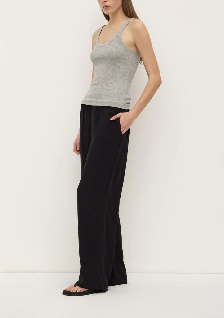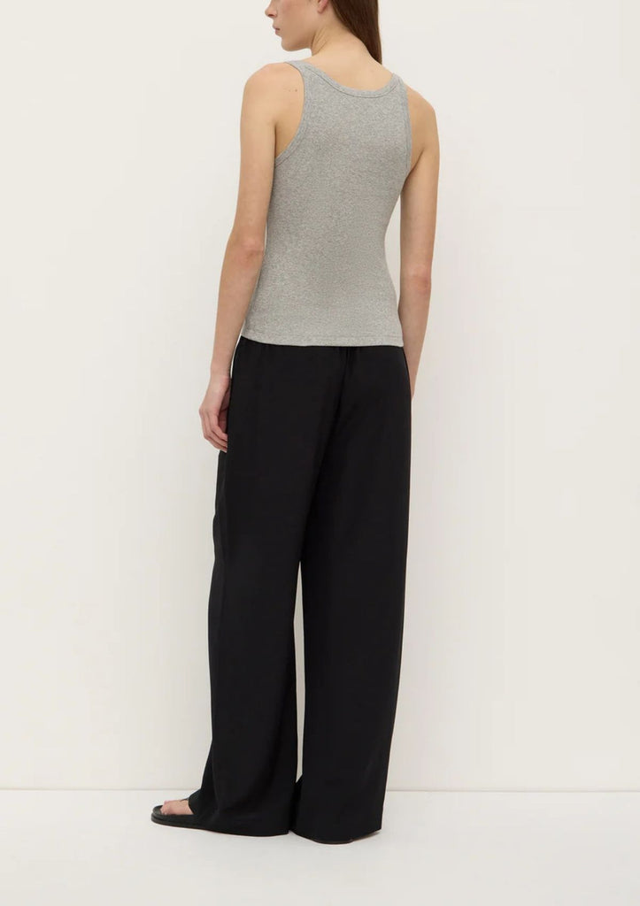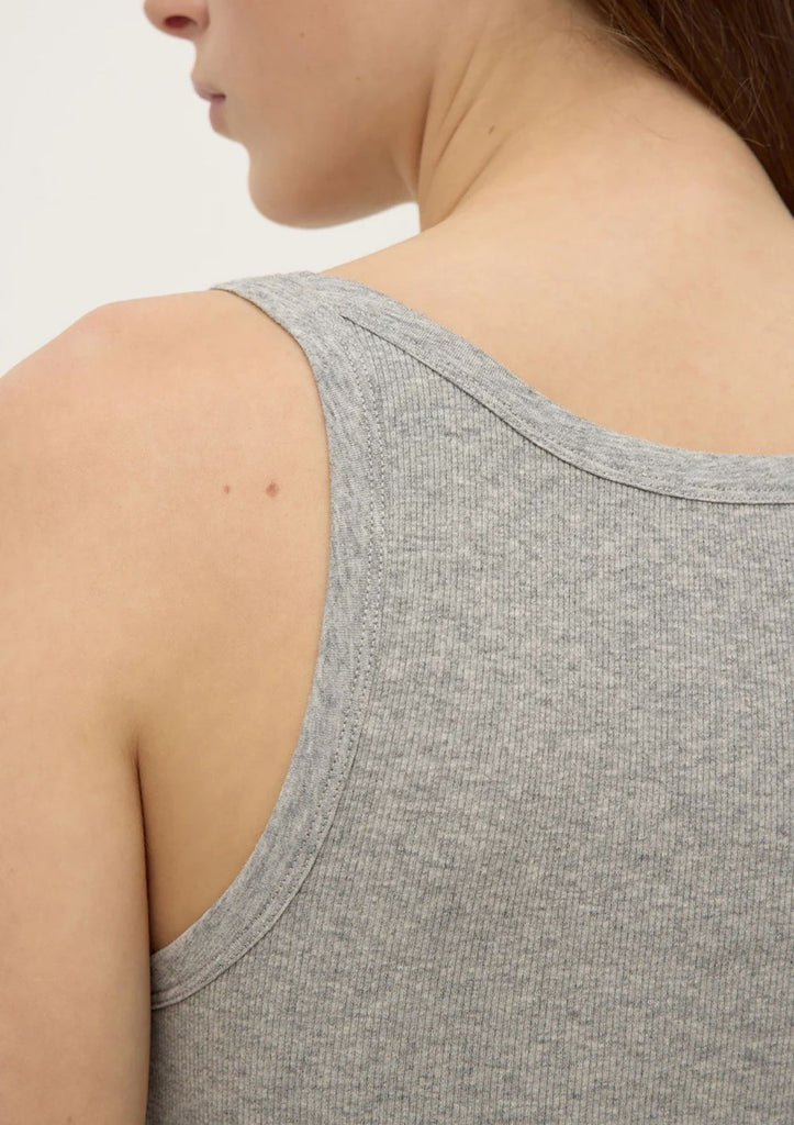 The Charlie Rib Tank in grey marle is a soft cotton jersey top with a scoop neckline and ribbed stretch finish.