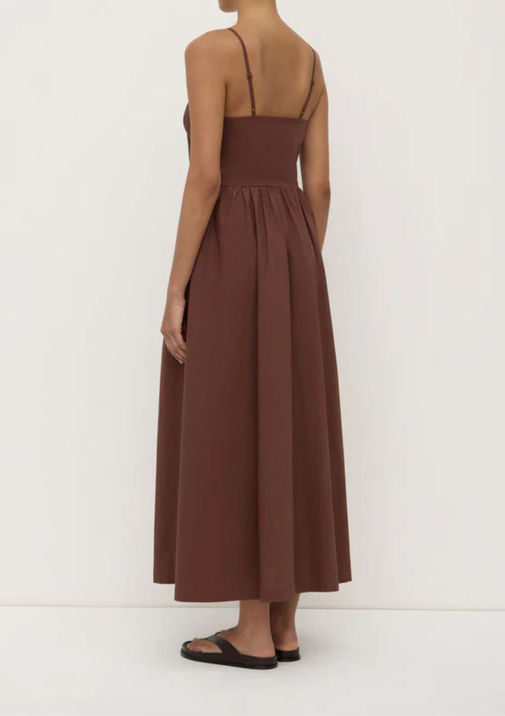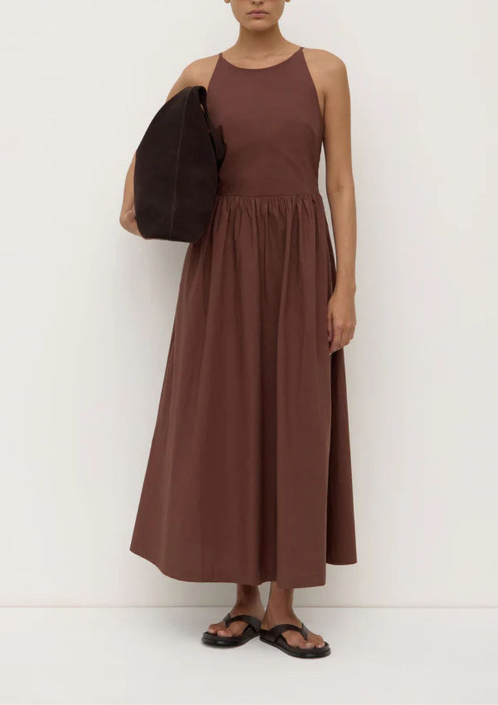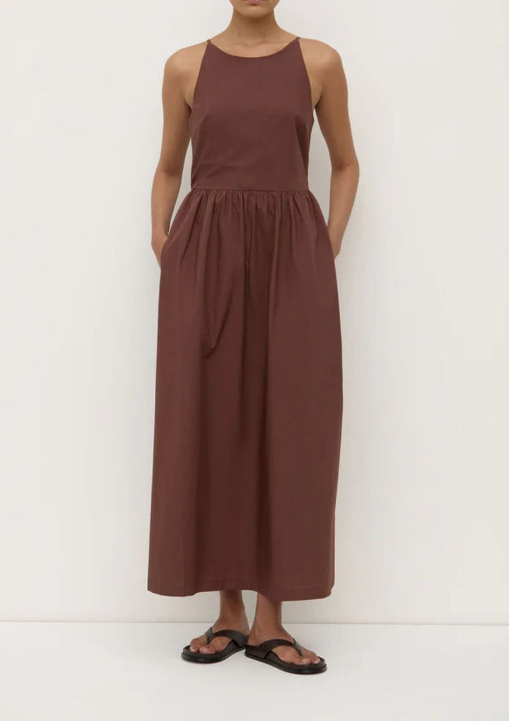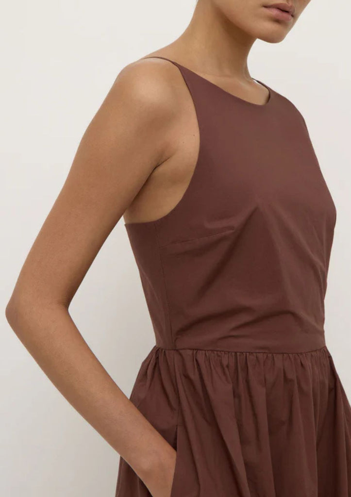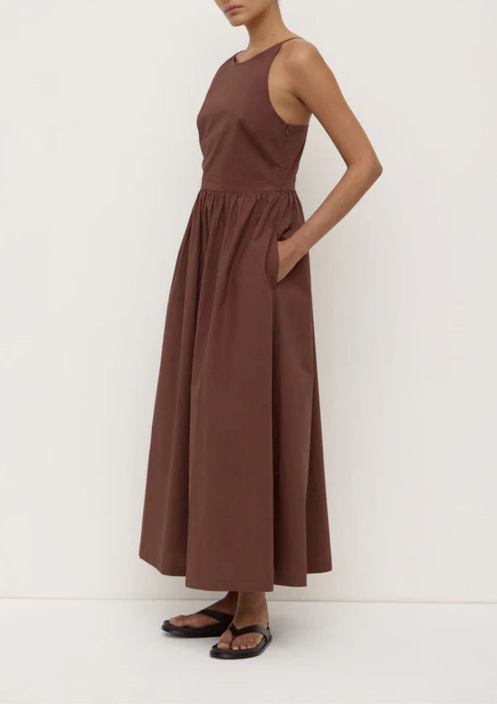 Crafted from our signature cotton poplin, this sleeveless midi dress is designed for day-to-night wear, featuring a fitted bodice and ankle-length skirt with side pockets for added utility.