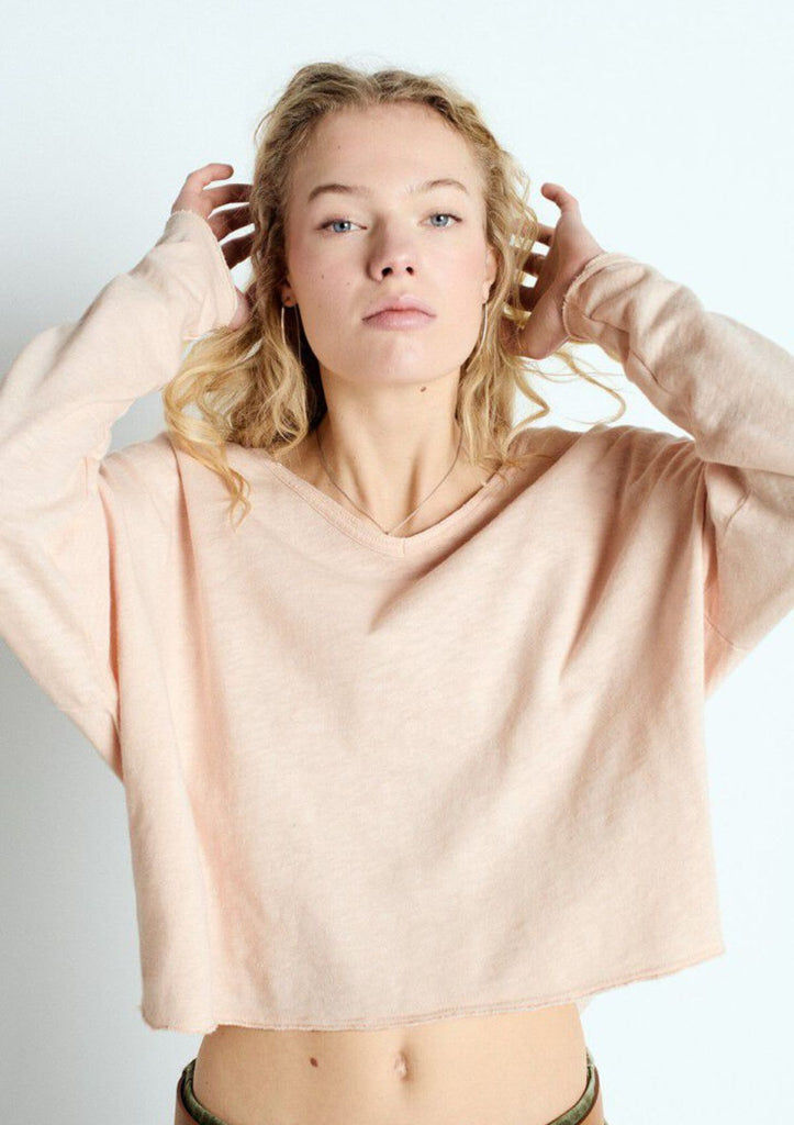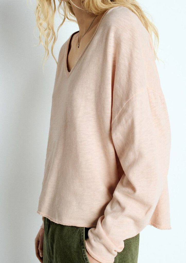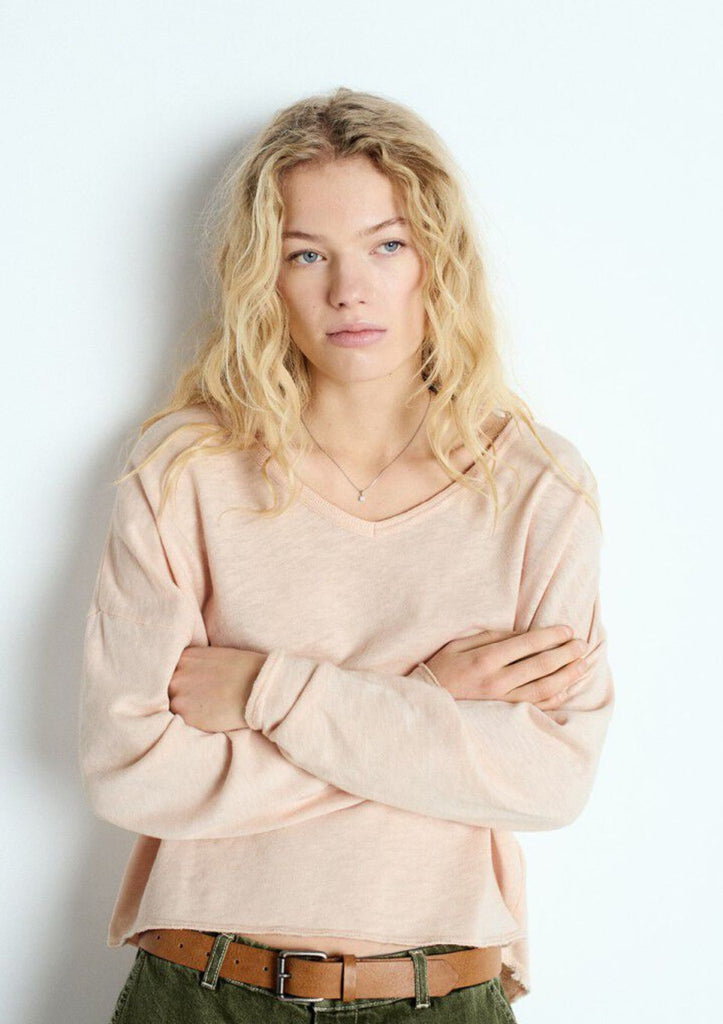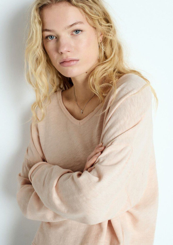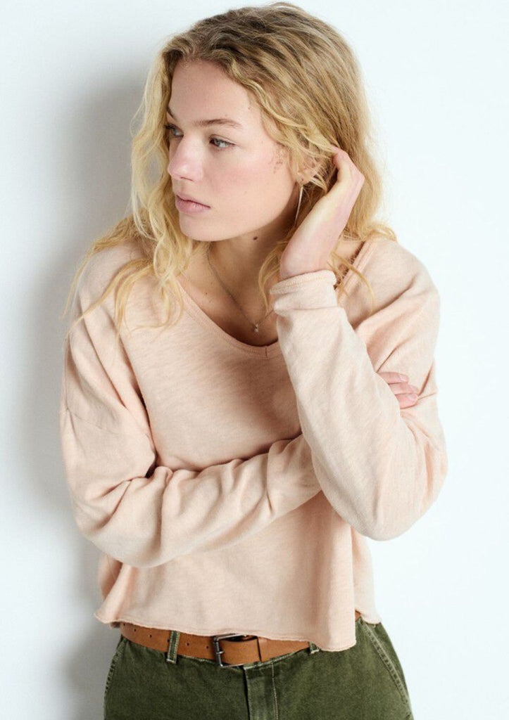/ American Vintage Sonoma Long Sleeve Tee - Scoop V-Neck - Vintage Biscuit