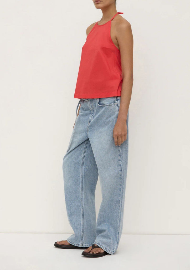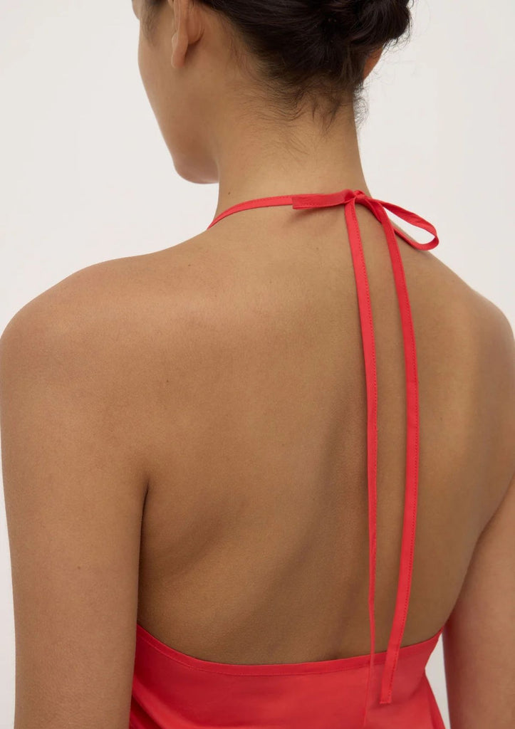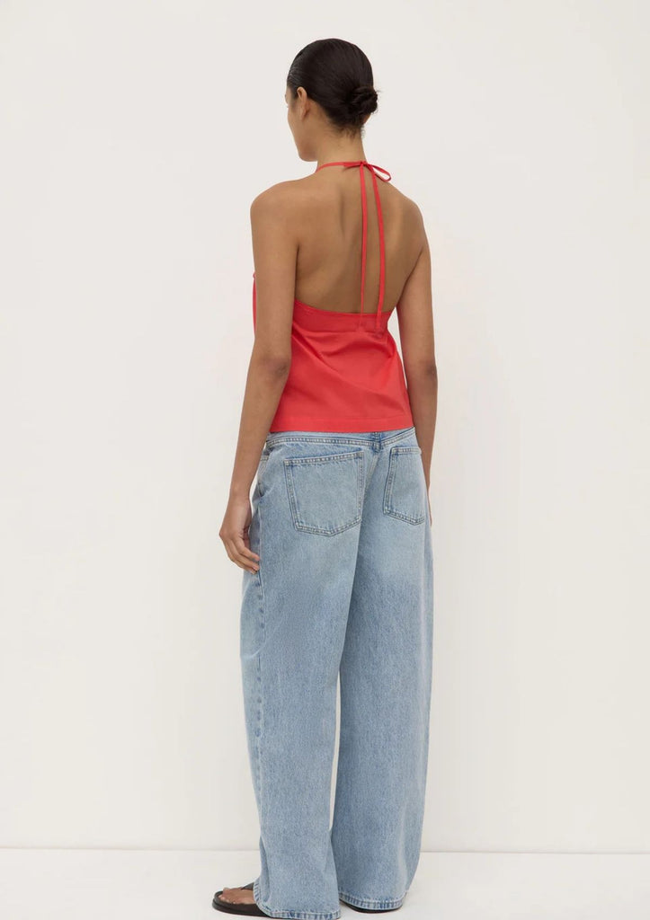 Halter neck top, crafted from 100% cotton poplin, featuring bind detailing on neckline, armholes and neck ties.