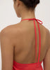 - Halter neckline with ties