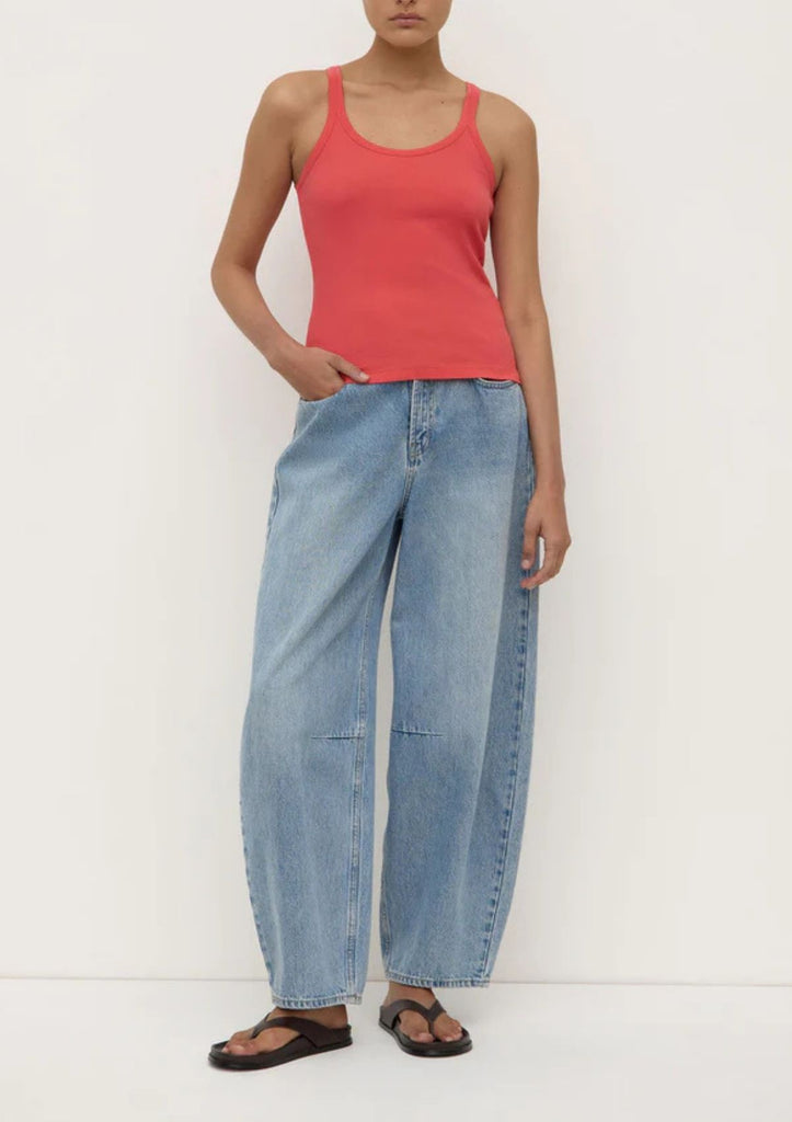 The Charlie Rib Tank in espresso is a soft cotton jersey top with a scoop neckline and ribbed stretch finish.