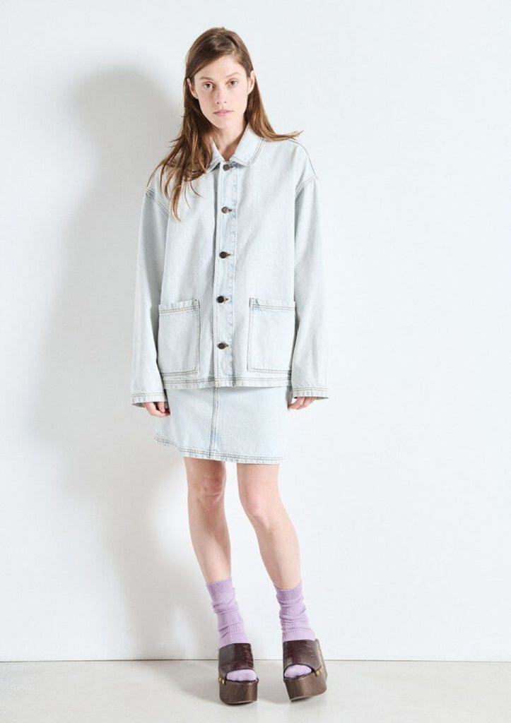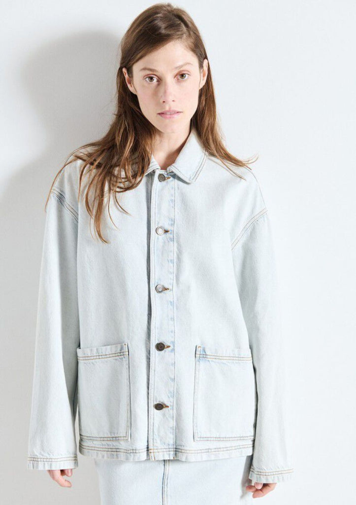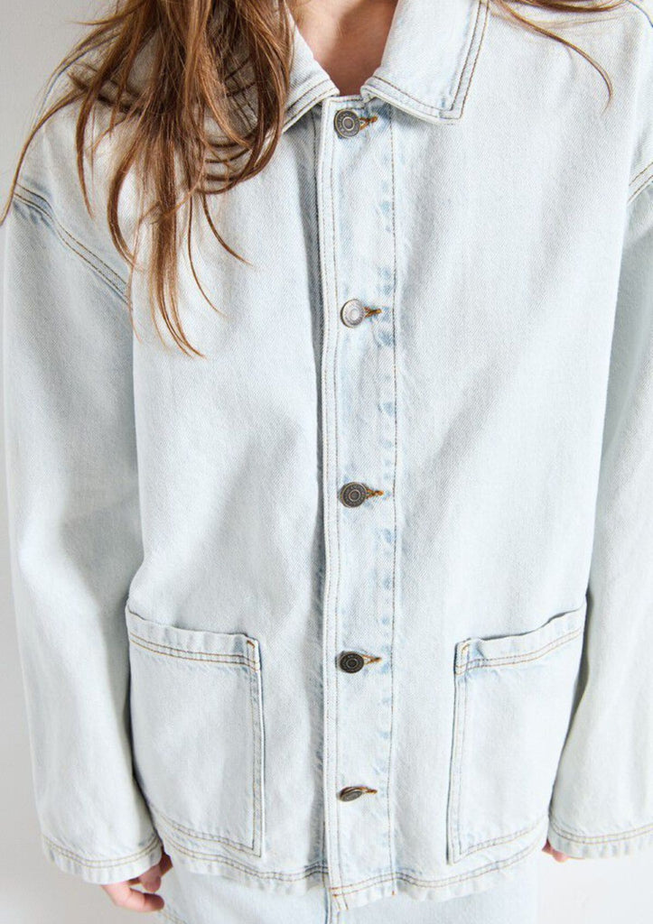 The must-have Joybird denim jacket has been updated with a new straight cut and a white wash! Right on trend with denim, this jacket is the perfect addition to both men's and women's wardrobes.