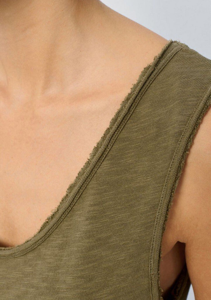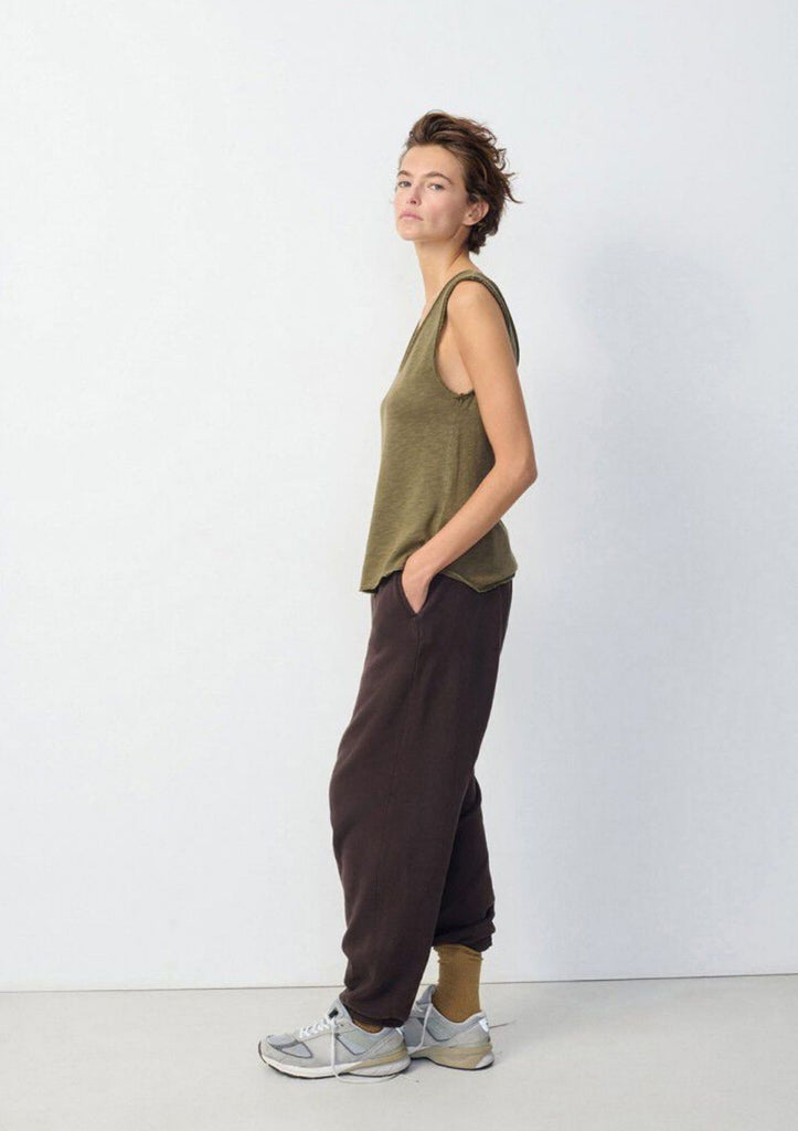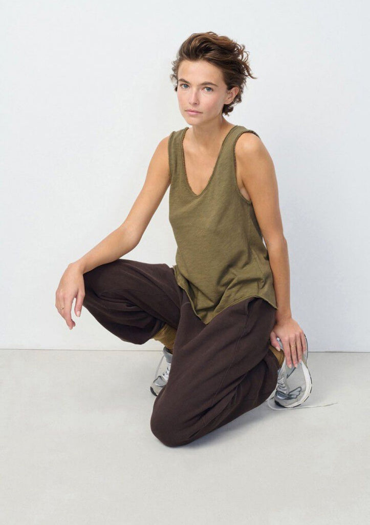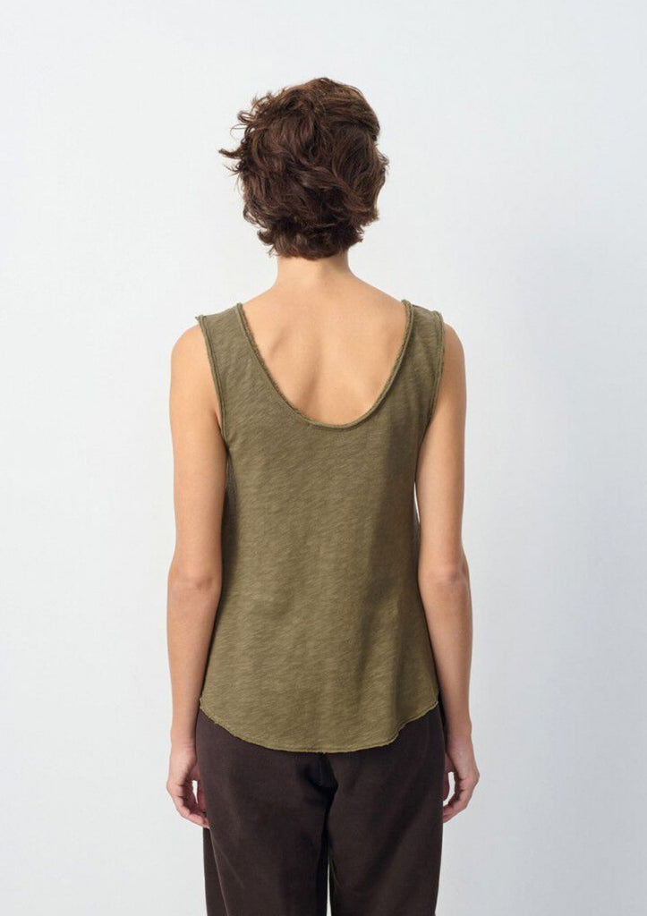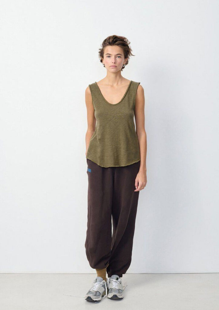The Sonoma Tank by American Vintage features a relaxed fitting sleeveless design with raw edges. It is crafted from 100% Cotton and has a soft fleck finish in the fabrication.