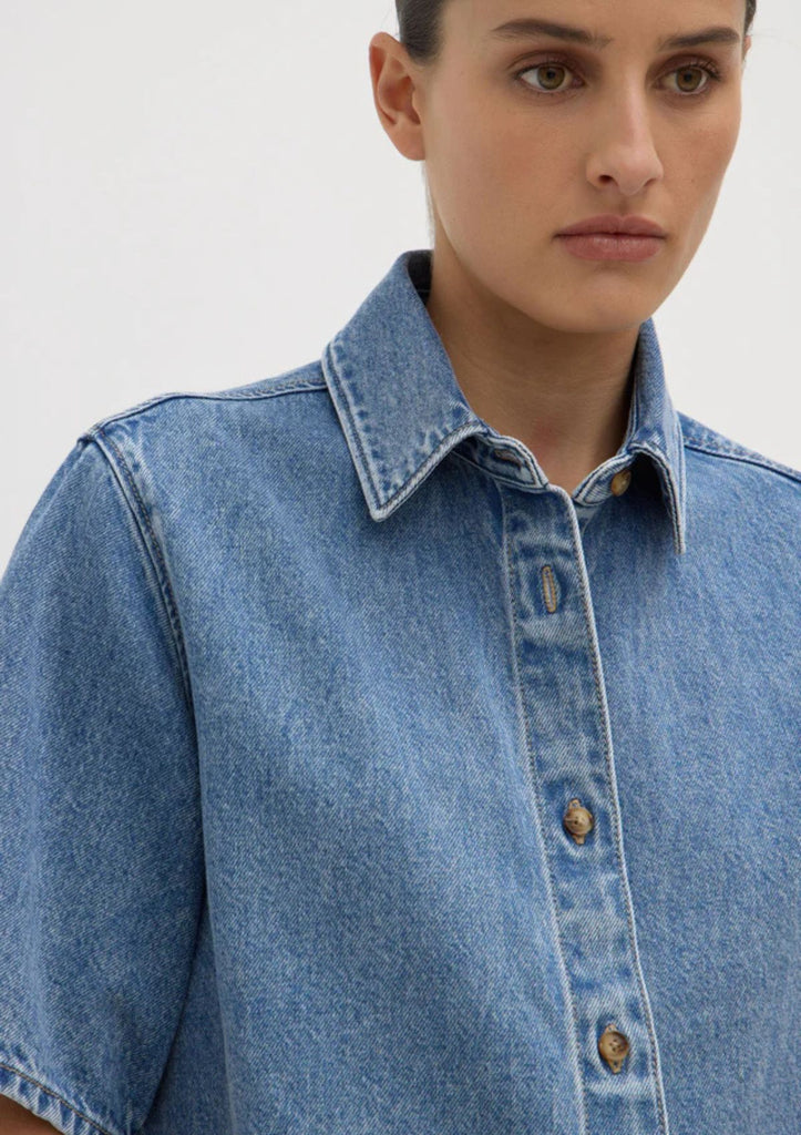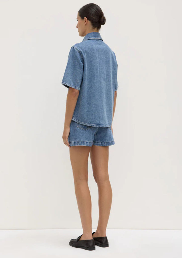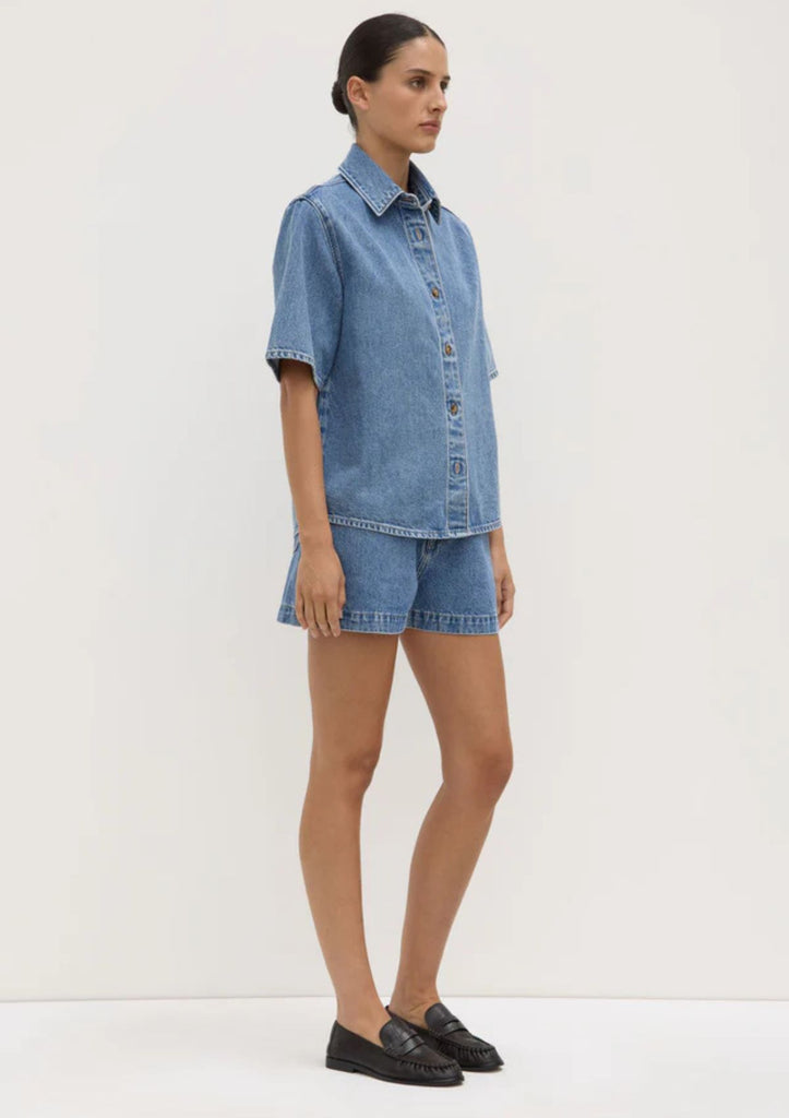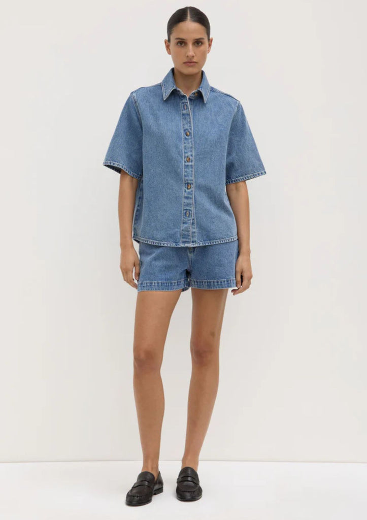 The Boxy Denim Short Sleeve Shirt is designed for classic everyday wear. Featuring a structured collar and button down front, it pairs effortlessly with our Boxy Denim Short.