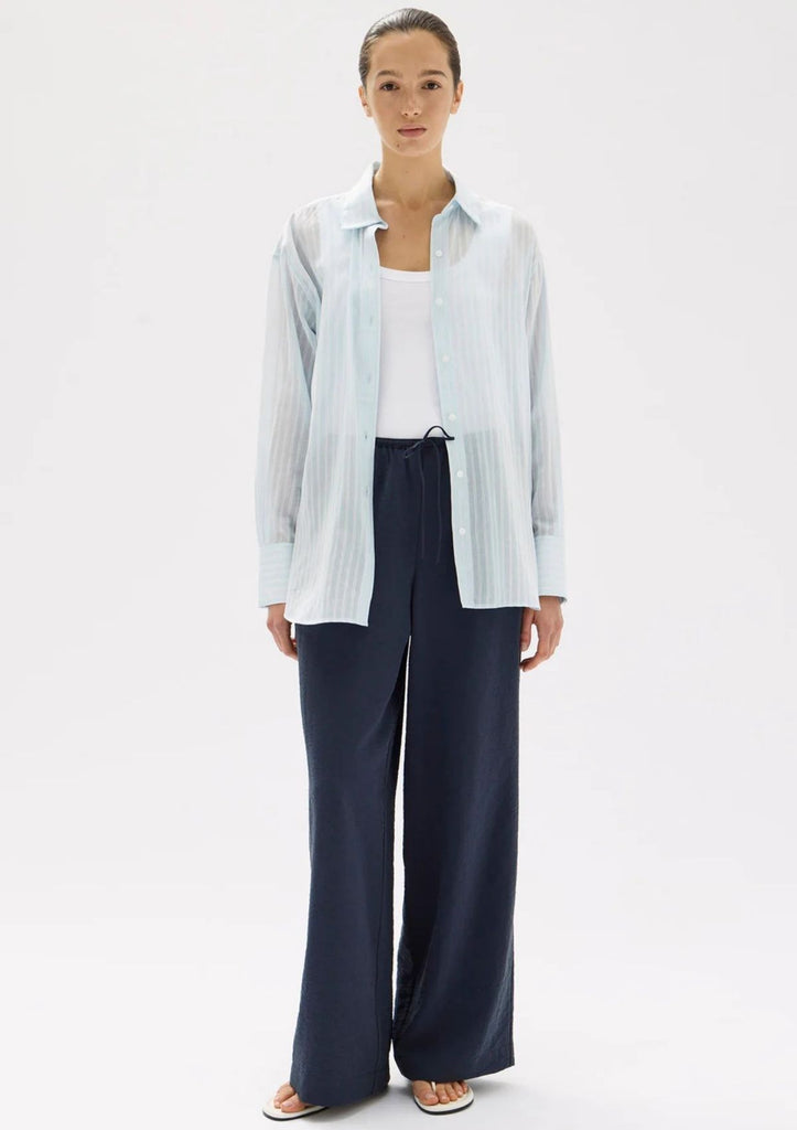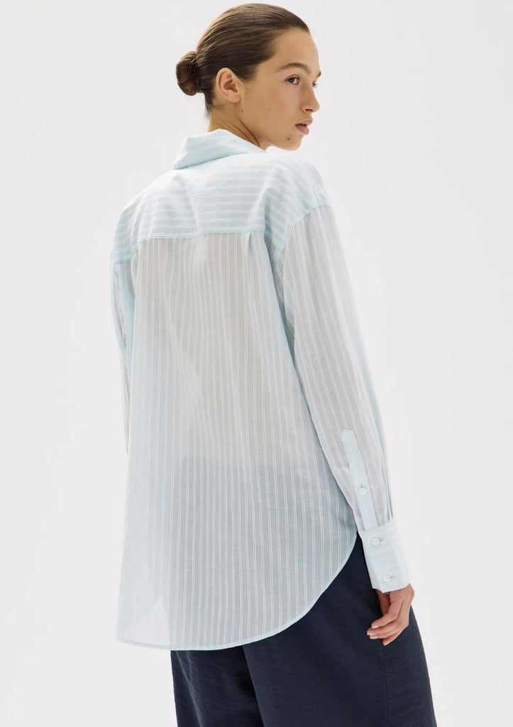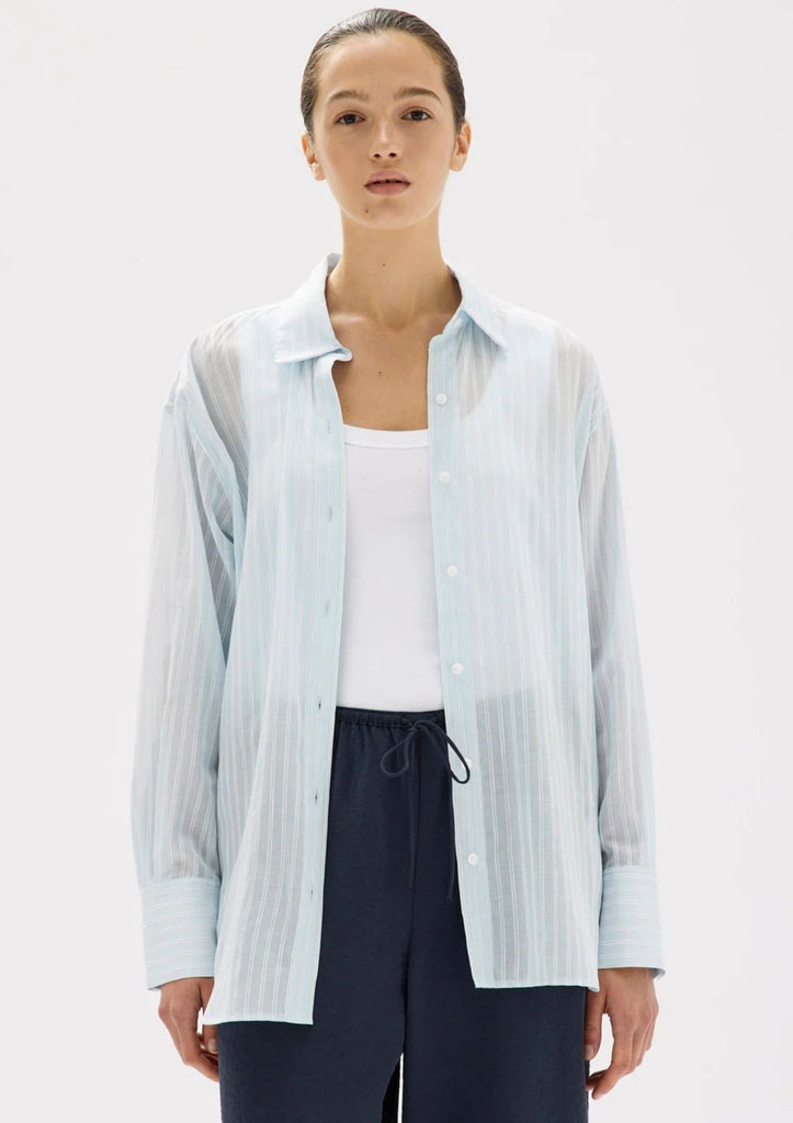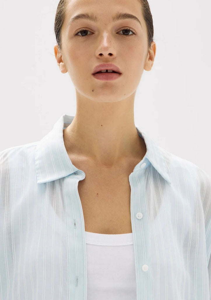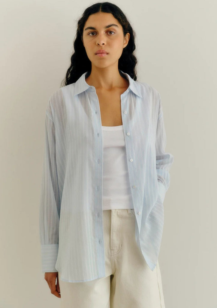Dual-stripe shirt with an effortless coastal feel. Made from a lightweight cotton-modal blend, this can be styled casually over your favourite tanks and tees or worn alone with a cotton pant or jean.