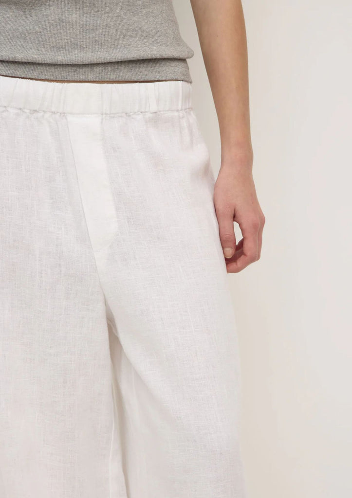 Crafted from a breathable pure linen fabric, this pant is designed for everyday ease. Featuring an elasticated waistband and internal waist tie, they can be adjusted to your desired fit.