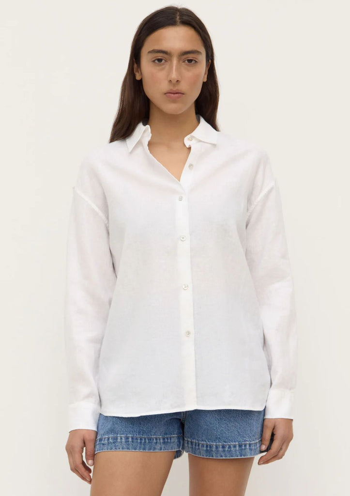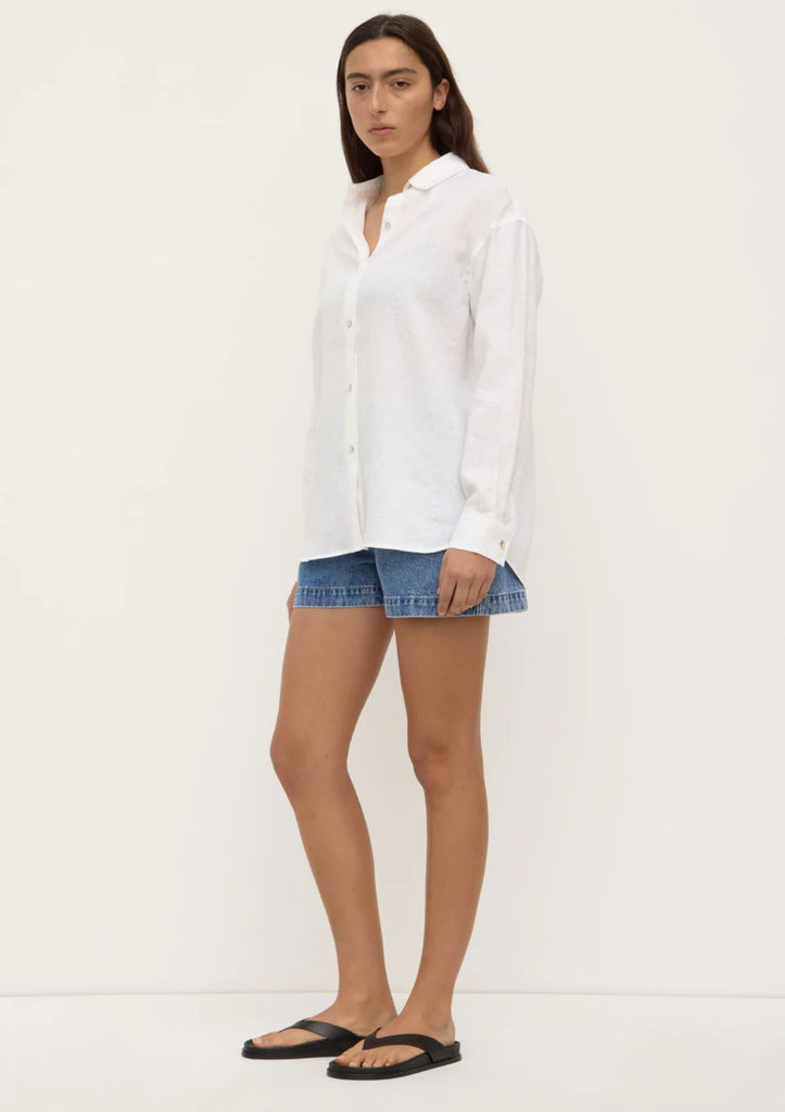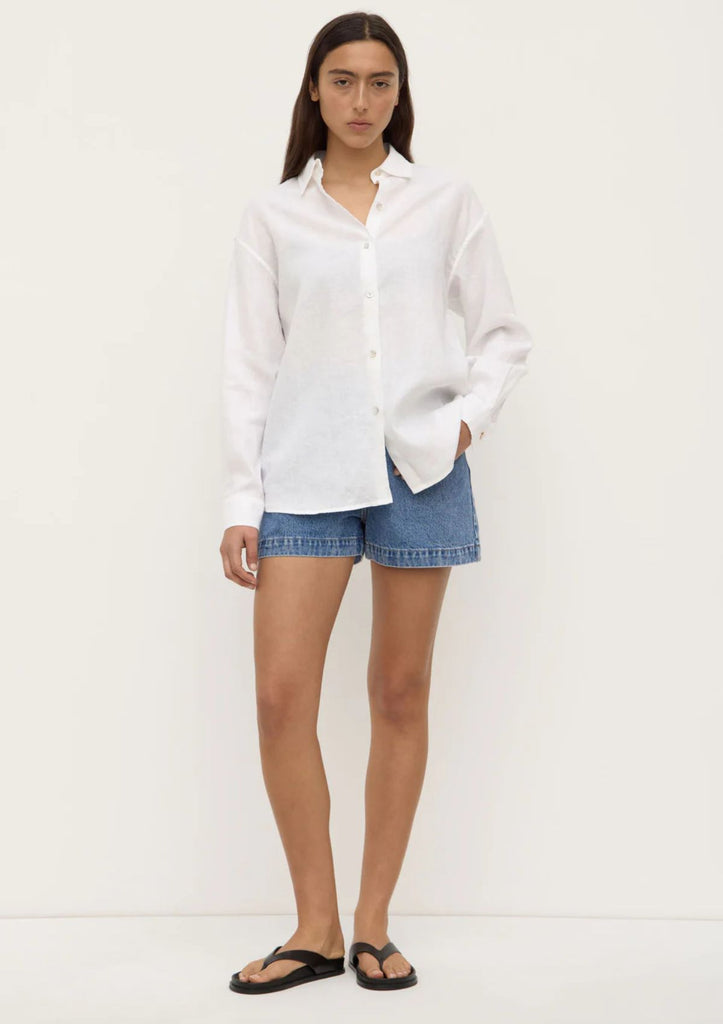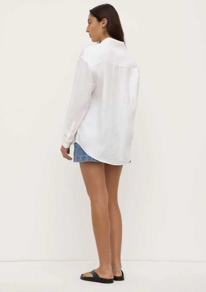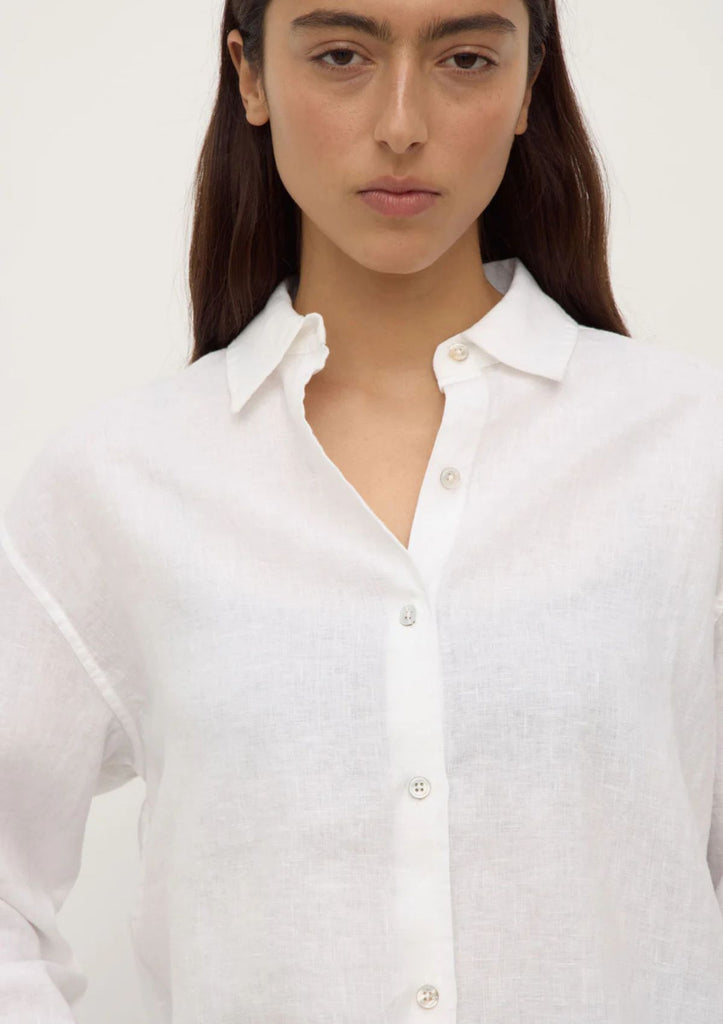 Crafted from a breathable pure linen fabric, this shirt is cut in a relaxed silhouette. Featuring pleated button cuffs, it can be styled with the sleeves rolled for a more casual look.