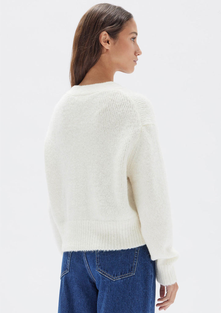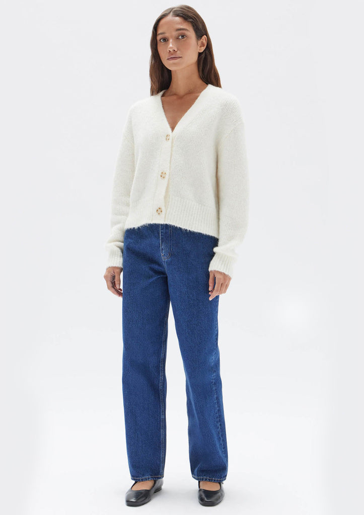 A wardrobe essential, the Evi Wool Knit Cardigan will compliment any outfit. The v neck cardigan is crafted from a supremely soft blend of wool, alpaca and recycled yarns, which offers a highly textured, soft and fluffy feel. In two classic shades, style with everyday outfits or wear over your shoulders for extra warmth.
