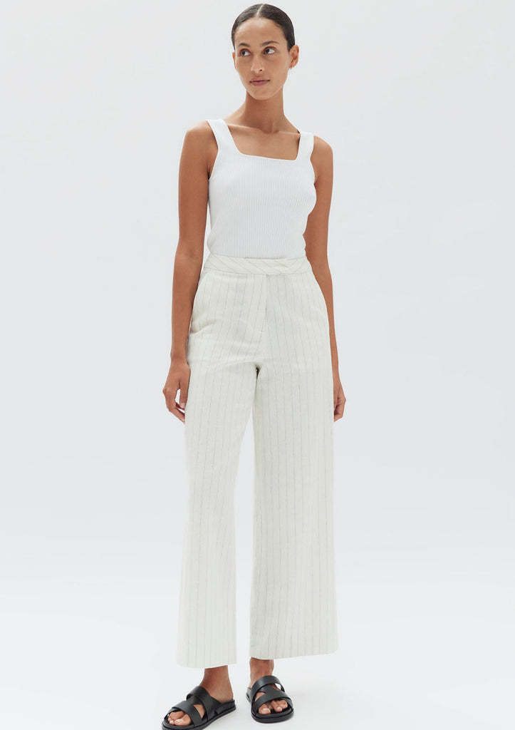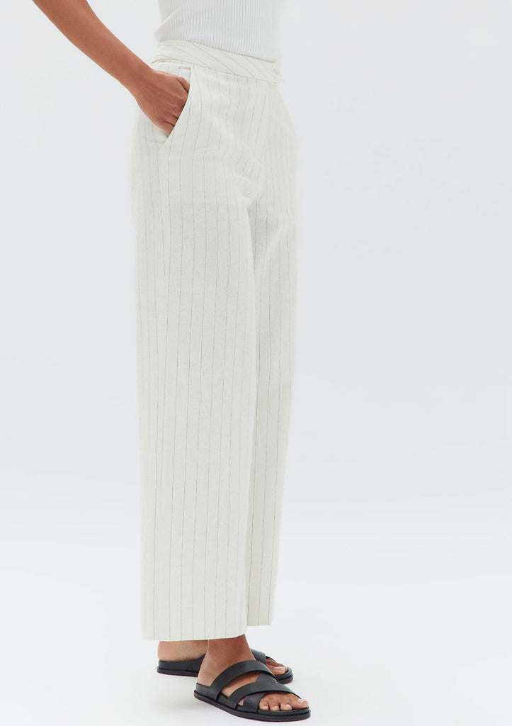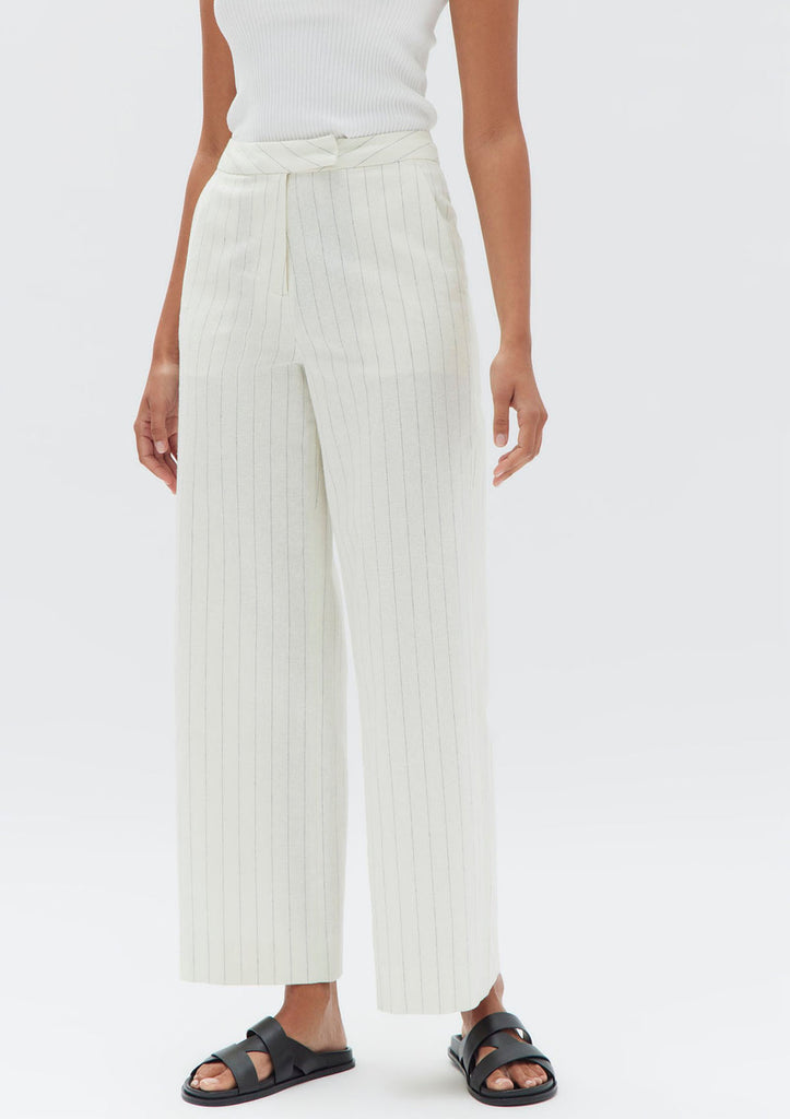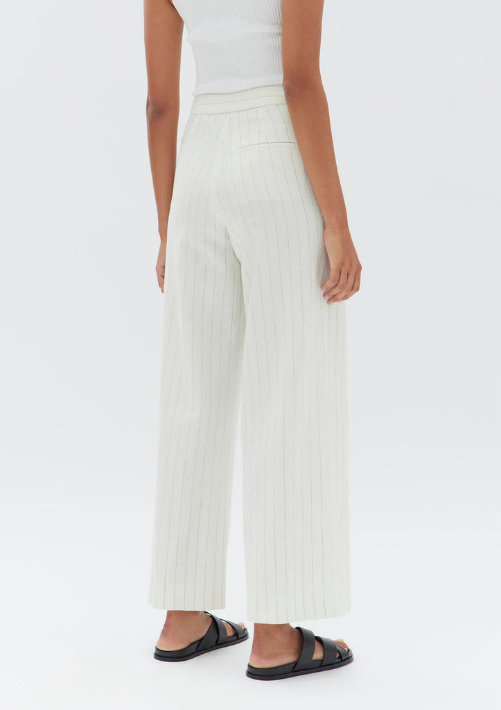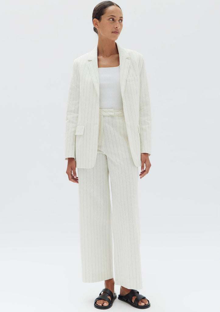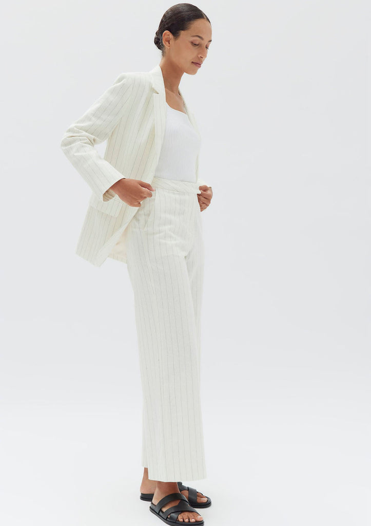 Our tailored Leila Stripe Linen Pant is an essential summer suiting style updated with a pinstripe. Crafted from premium linen, these wide-leg pants are impeccably tailored for an effortless, flattering fit. Designed to be worn with our Leila Stripe Linen Jacket, the pinstripe linen pants look great with a rib tank, cotton tee or silk top.