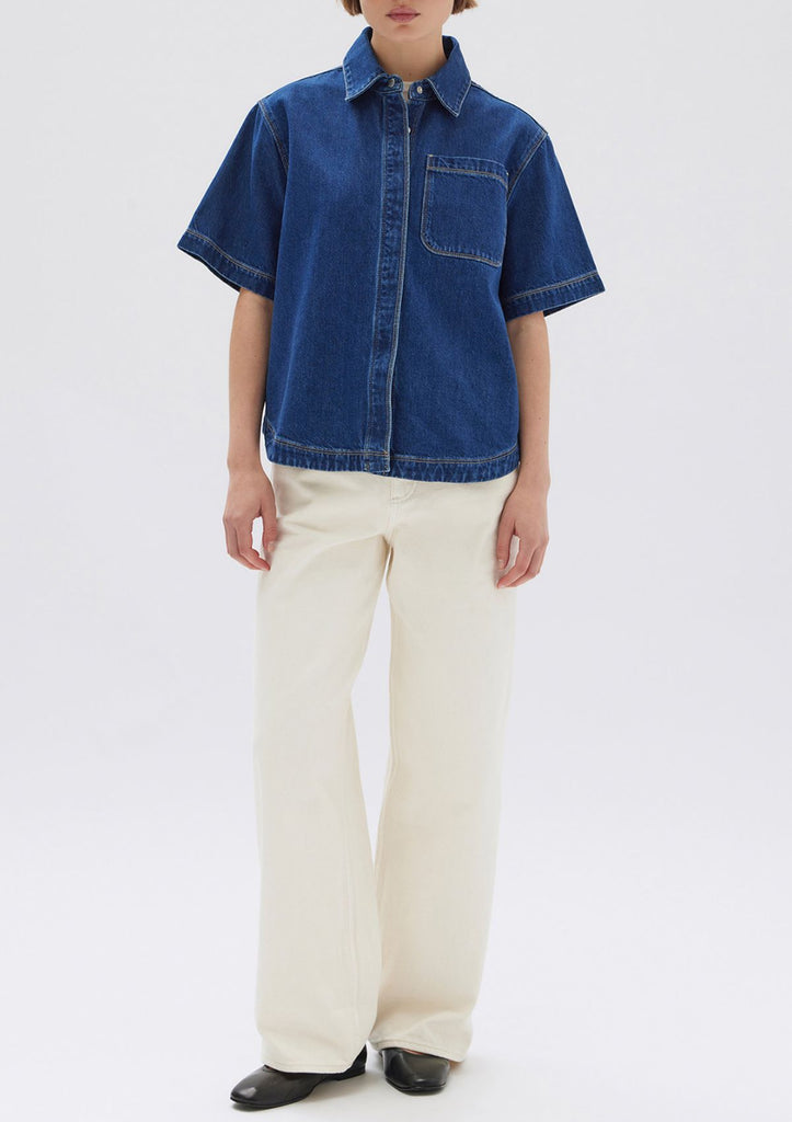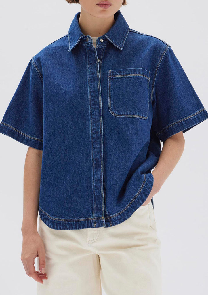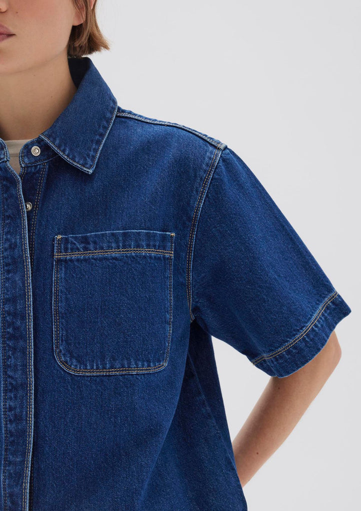 Update your denim wardrobe with our Marlow Boxy Denim Shirt. Made from premium cotton denim with utilitarian appeal, the shirt has a boxy silhouette and oversized fit. Its designed with concealed metal button closures through the front, a curved hem and chest pocket.