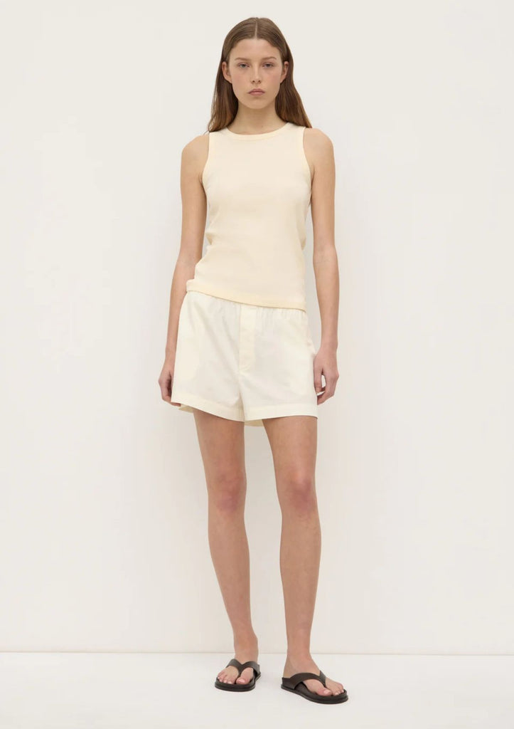 Made for layering, the Nika Tank is cut in a high neck silhouette and features a ribbed body for a close fit.
