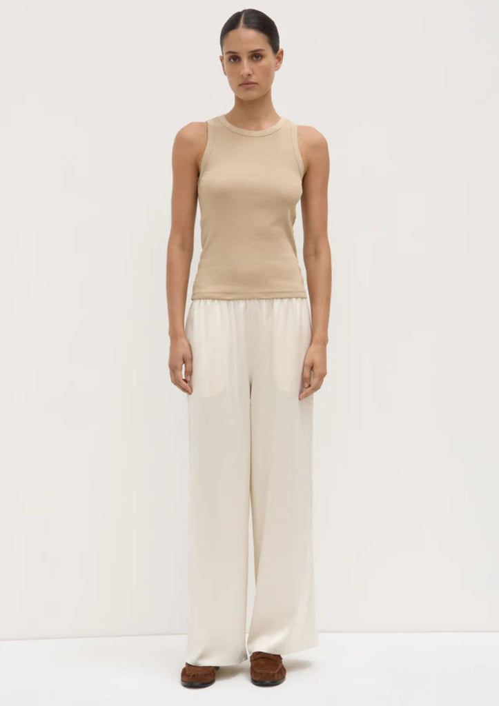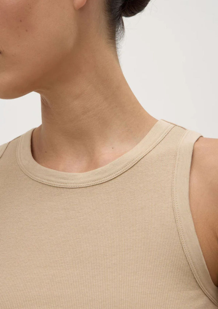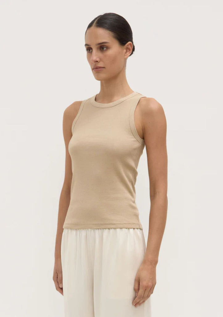 Made for layering, the Nika Tank is cut in a high neck silhouette and features a ribbed body for a close fit.