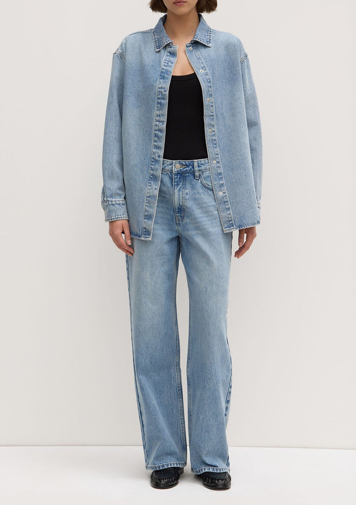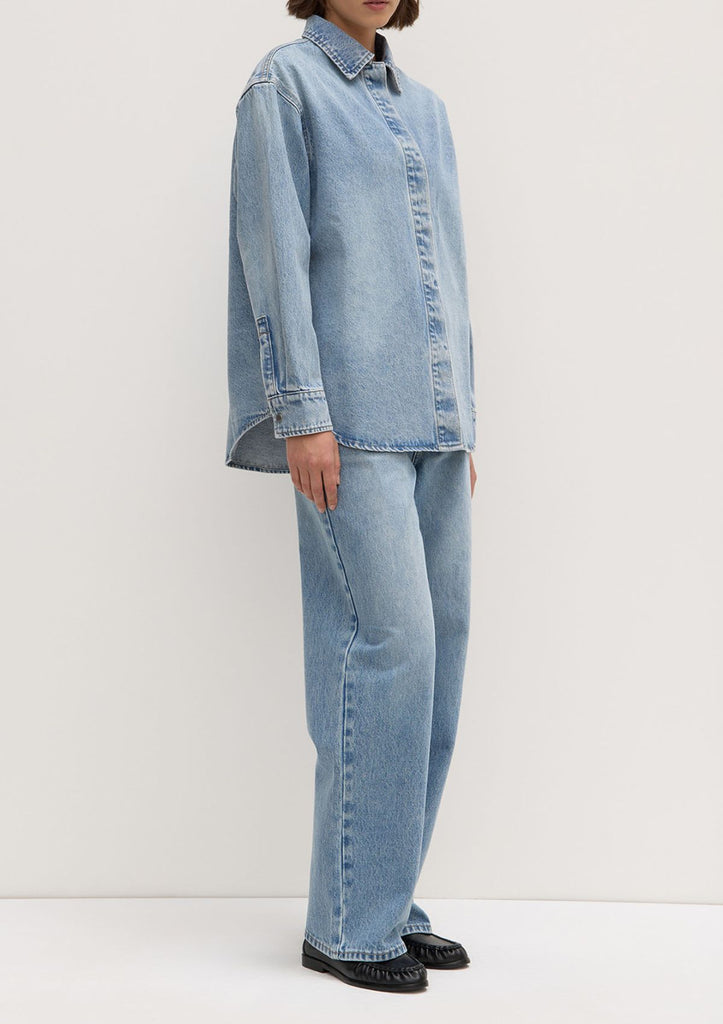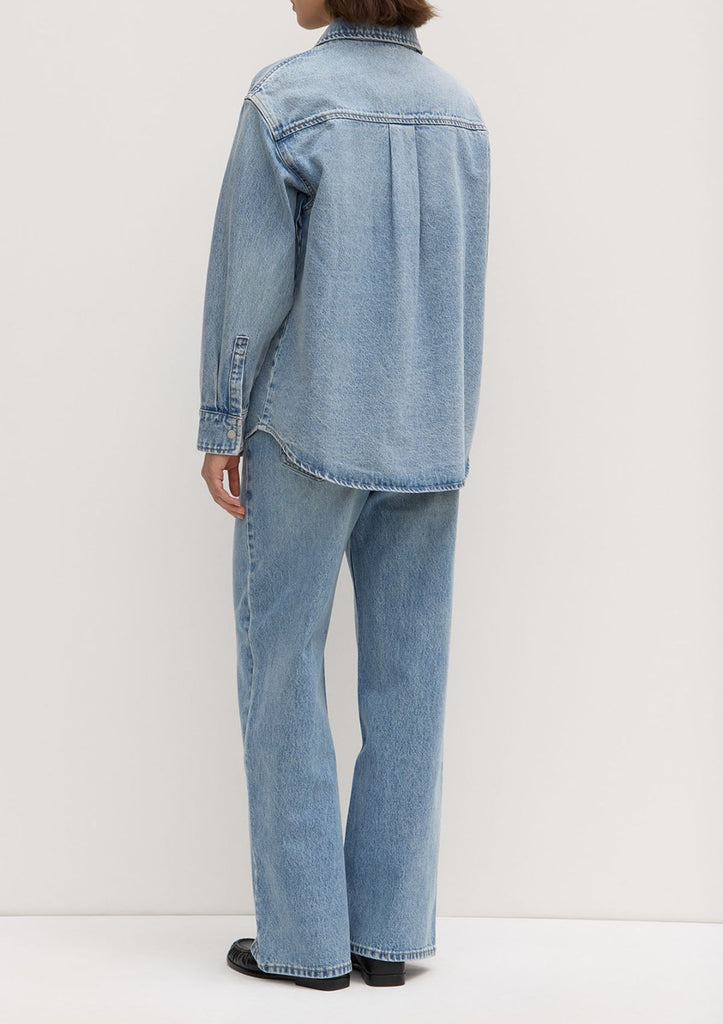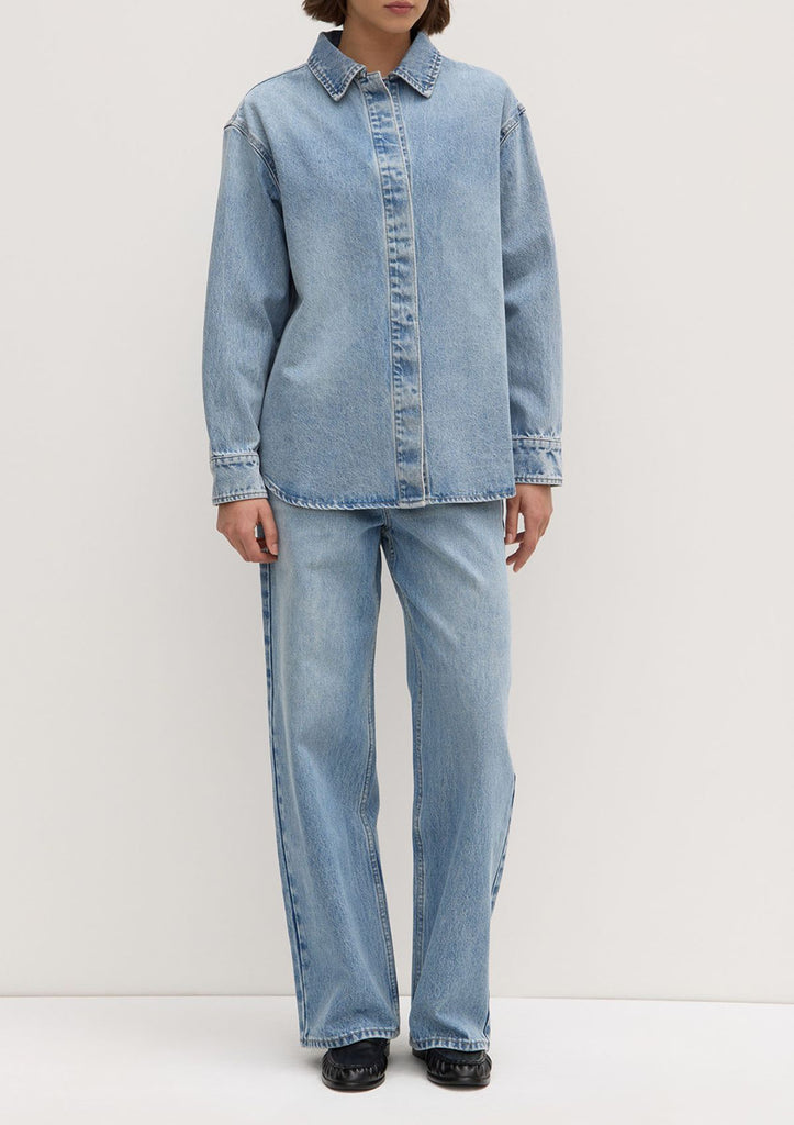 Signature denim style, designed be worn like a jacket while retaining the design features of a shirt.