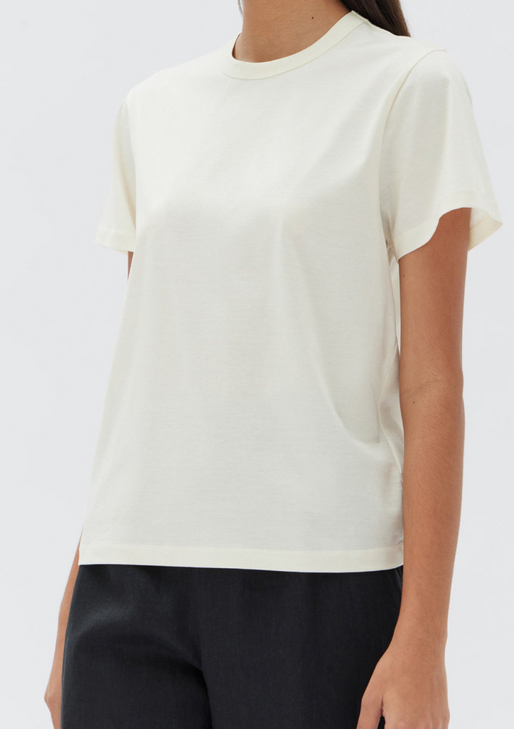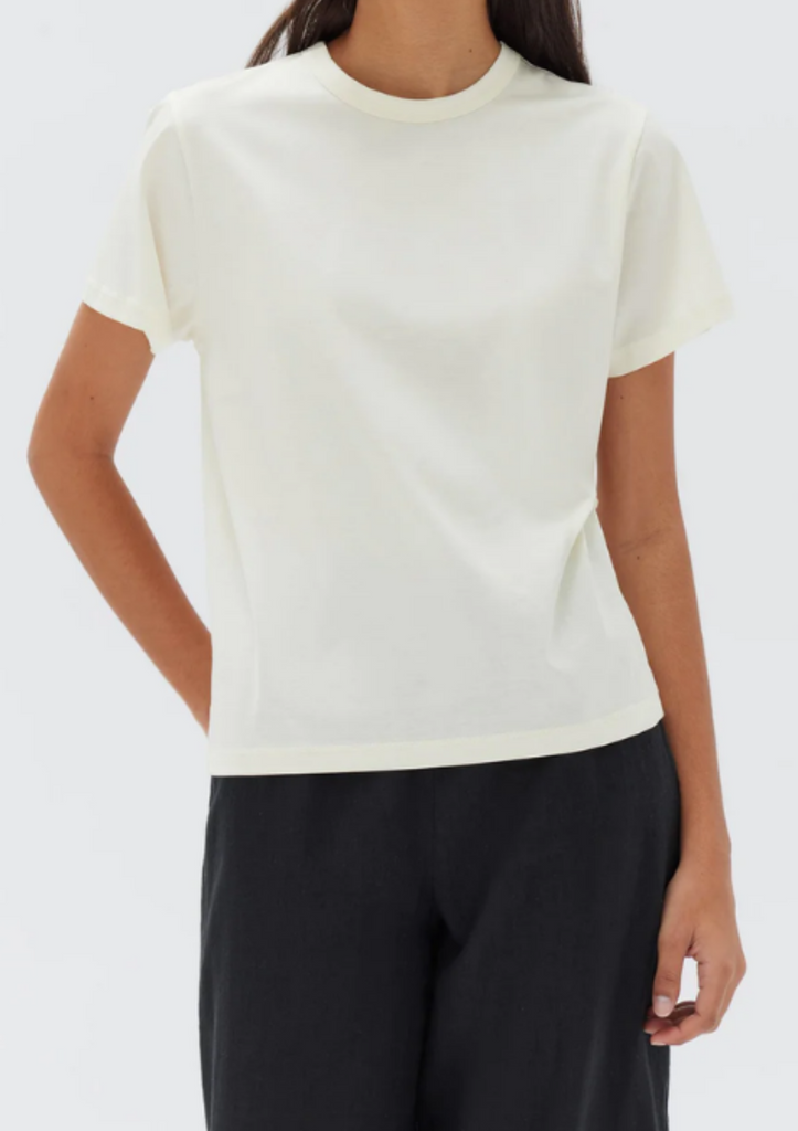 Our Silk Blend Tee is a wardrobe foundation elevated with the luxurious feel of silk. Made from a buttery soft blend of cotton and silk, this premium tee has a subtle sheen, beautiful drape and smooth, lightweight finish. Style this classic silhouette with workwear and occasion outfits.