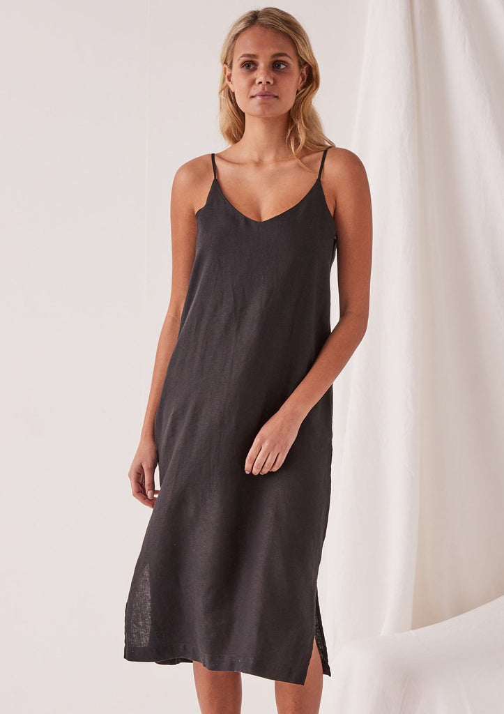 Assembly Label Linen Slip Dress - Black