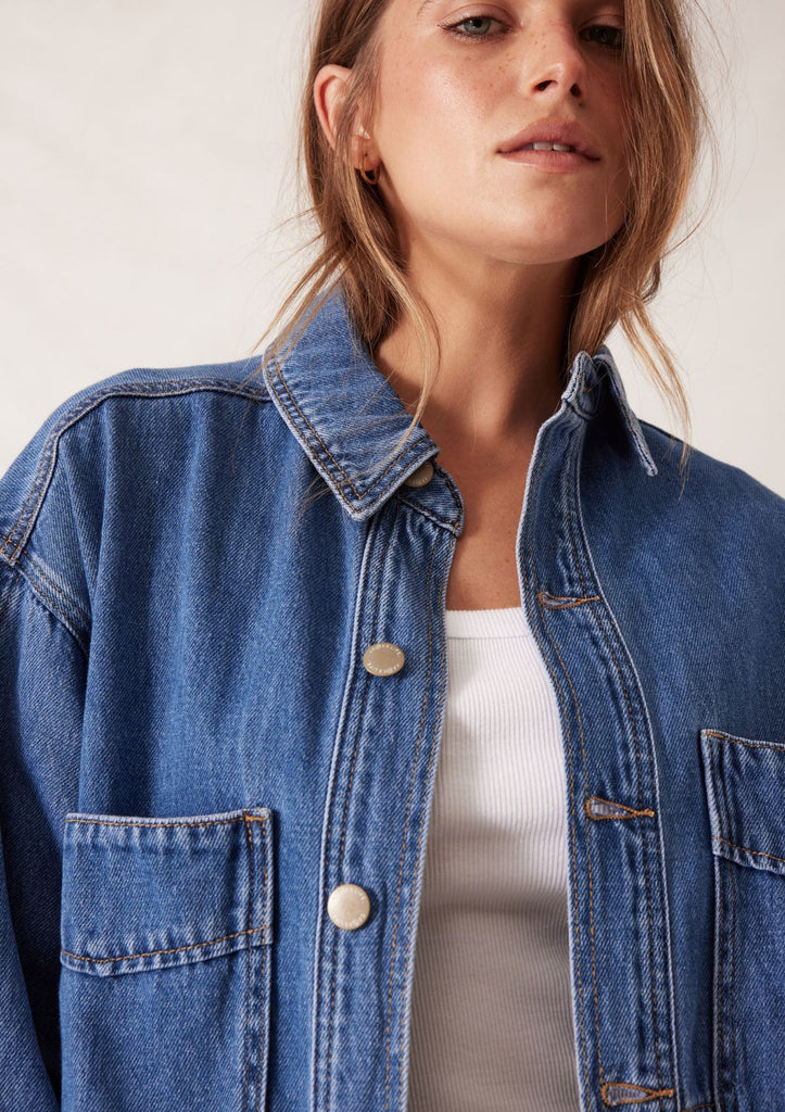 ntroducing our Denim Side Pocket Shacket - the perfect blend of style and functionality. Made from our heavier weight rigid denim, this piece only gets better with time. Crafted with 100% organic cotton featuring functional front patch pockets and side pockets, this shacket effortlessly combines practicality and fashion. The rounded shaped cuff adds a touch of playful charm, while the hip length ensures a flattering silhouette.