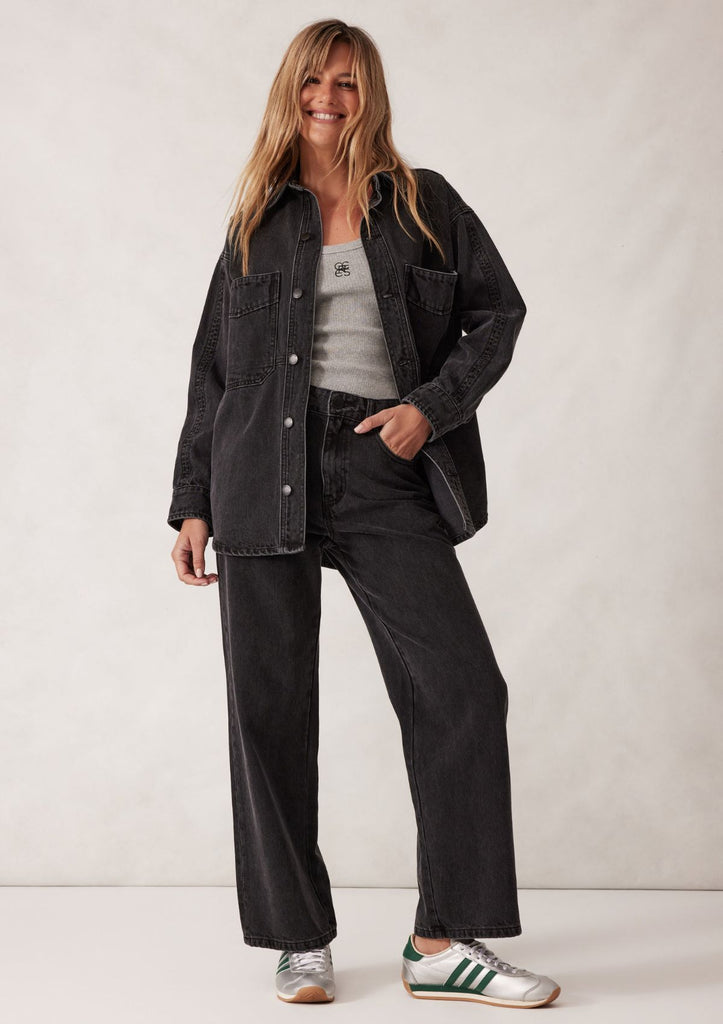 Introducing our Denim Side Pocket Shacket - the perfect blend of style and functionality. Made from our heavier weight rigid denim, this piece only gets better with time. Crafted with 30% recycled cotton featuring functional front patch pockets and side pockets, this shacket effortlessly combines practicality and fashion. The rounded shaped cuff adds a touch of playful charm, while the hip length ensures a flattering silhouette.