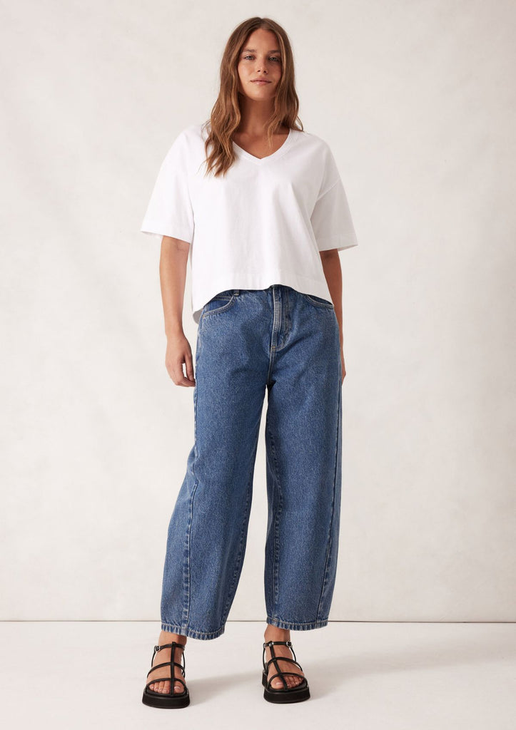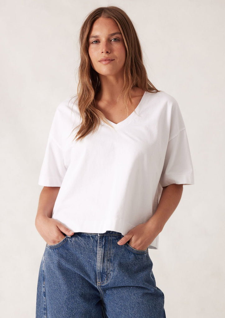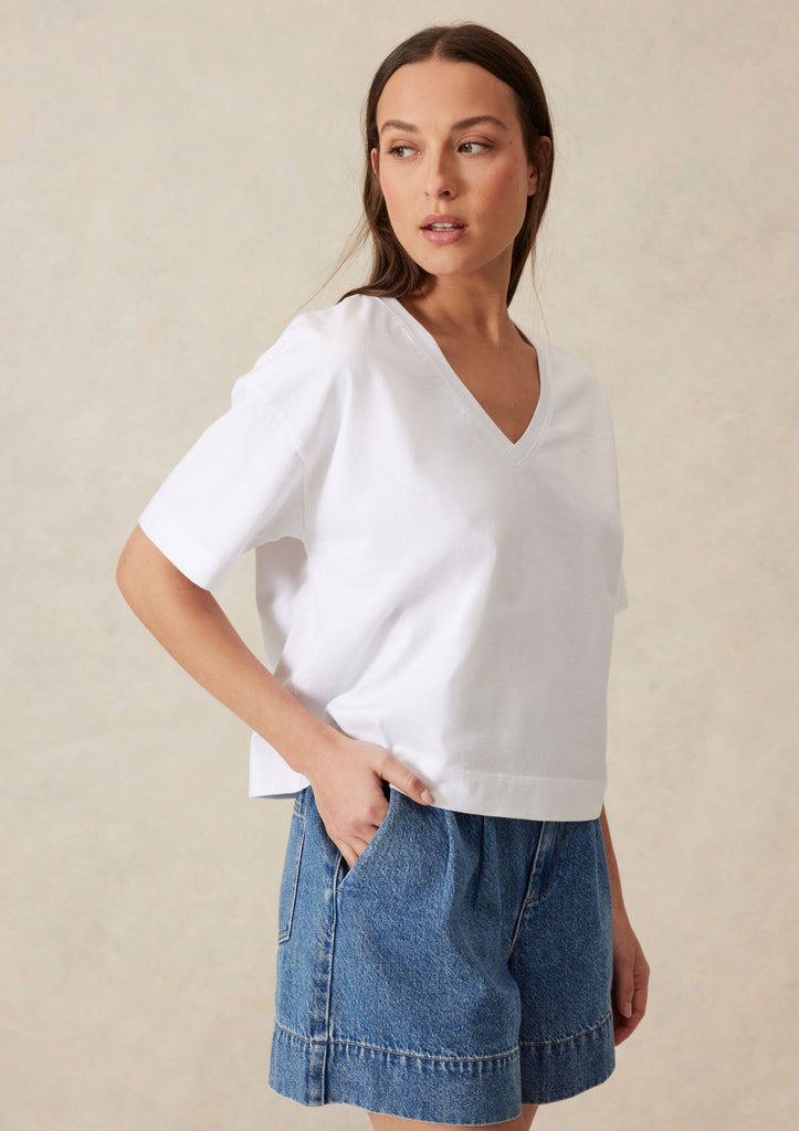 Introducing the Boxy V Neck Tee, your new favourite wardrobe essential. Made from Australian Cotton Jersey, it not only feels incredibly soft but also supports local farmers. The boxy relaxed shape, wide hemline, and slightly cropped length give it a laid-back vibe, while the V neckline adds a touch of casual sophistication. Get ready to rock that effortless, relaxed-chic look.