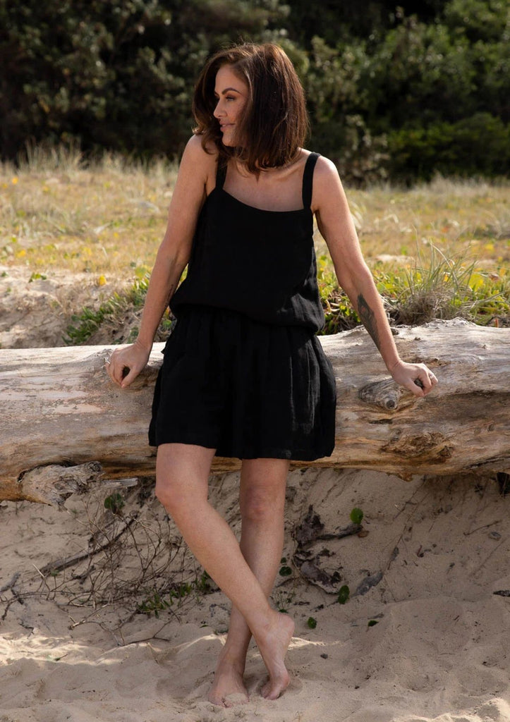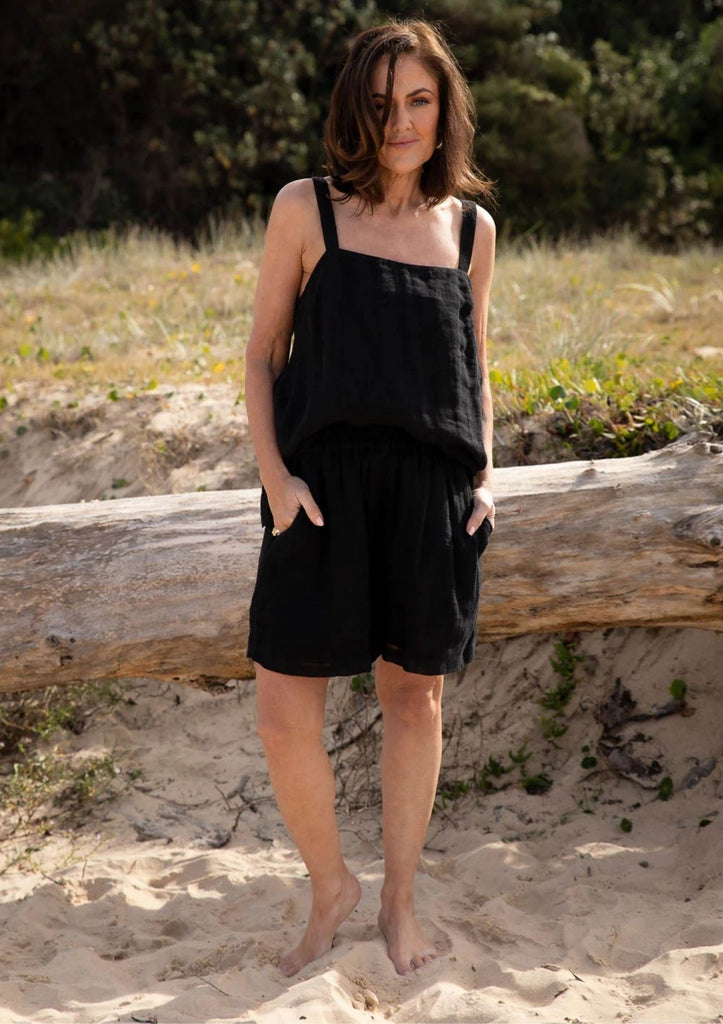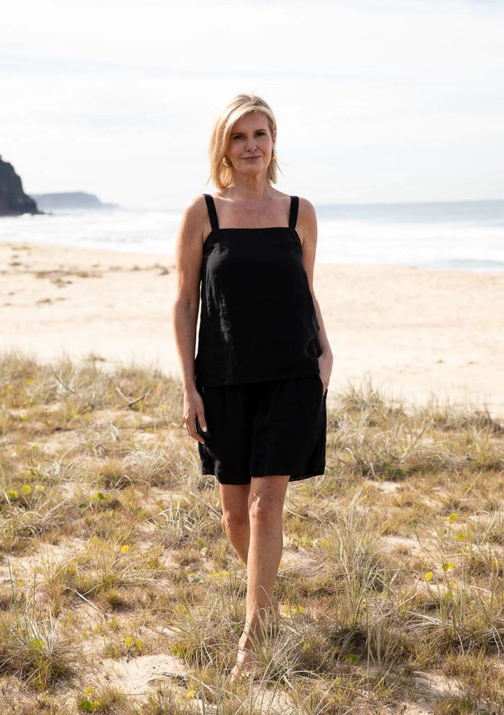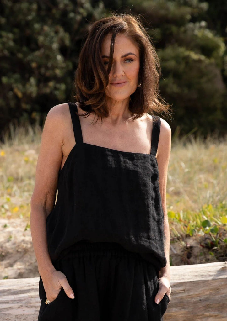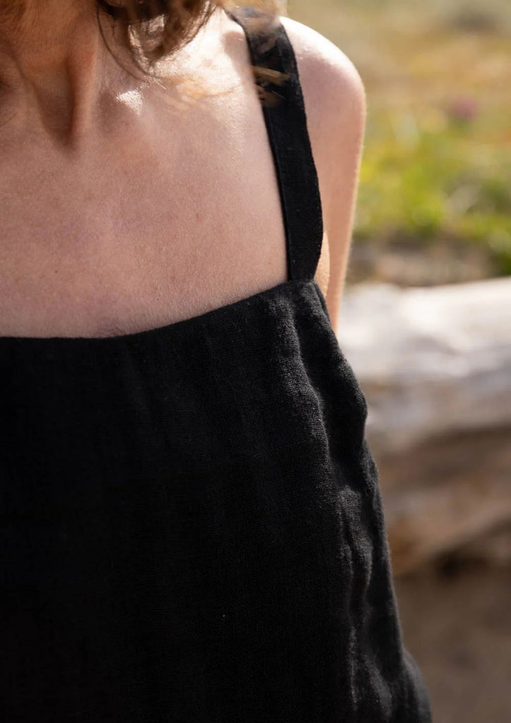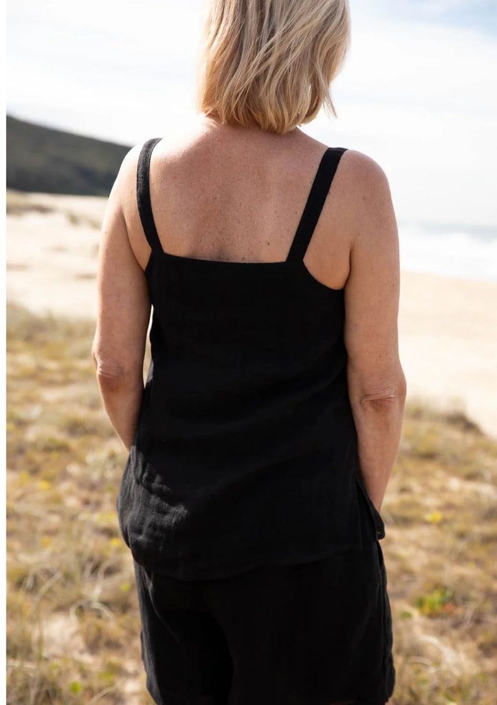 The design of the Classic Linen Tank is refined and classic. The neckline is a square cut and shows off the perfect amount of décolletage. The bottom hem falls just above the hip, pairing elegantly with the Arana Pant or Tallows Shorts.