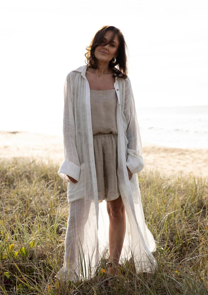 Eadie's Luxe Linen Capsule is crafted from luxe lightweight gauze linen. This apparel collection utilises exclusively developed gauze linen fabric, renowned for its exceptional softness and graceful drape on the body.