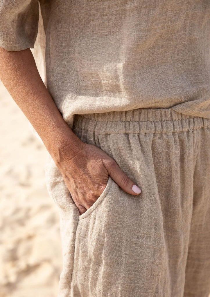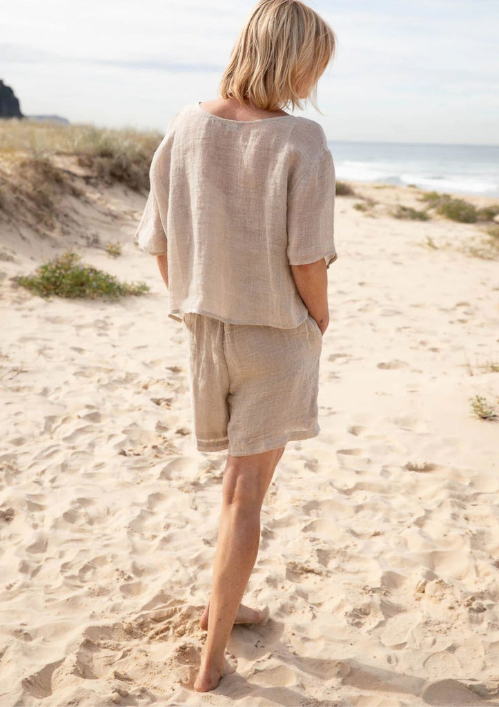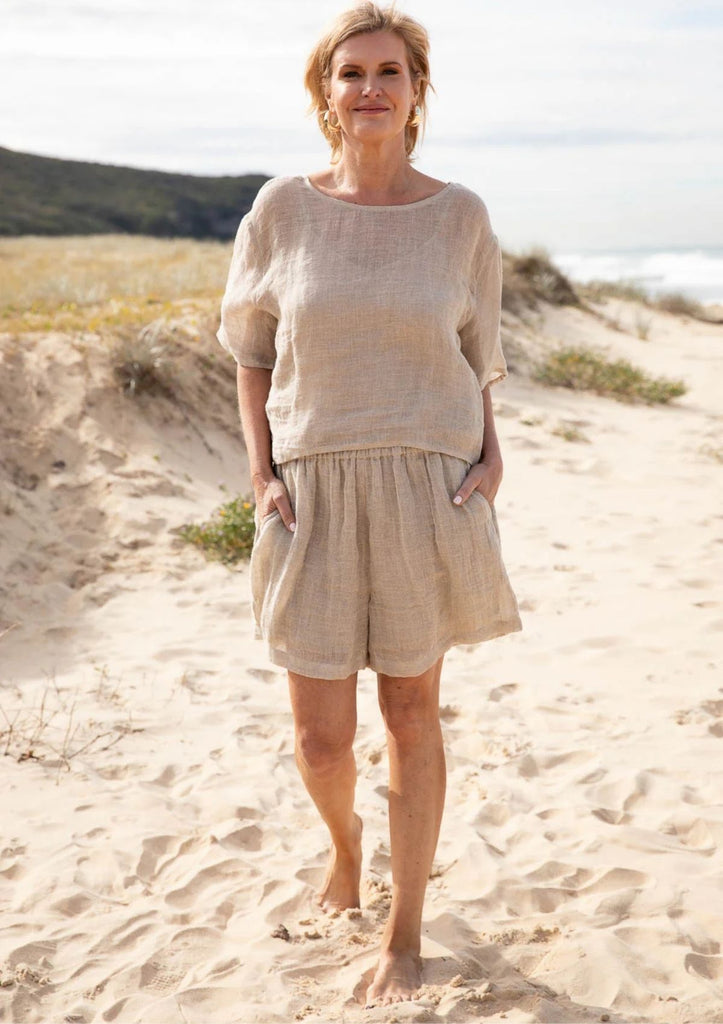The Tallows Linen Shorts effortlessly combine style and ease. Featuring pockets, elasticised waist and cotton lining for extra comfort and functionality.