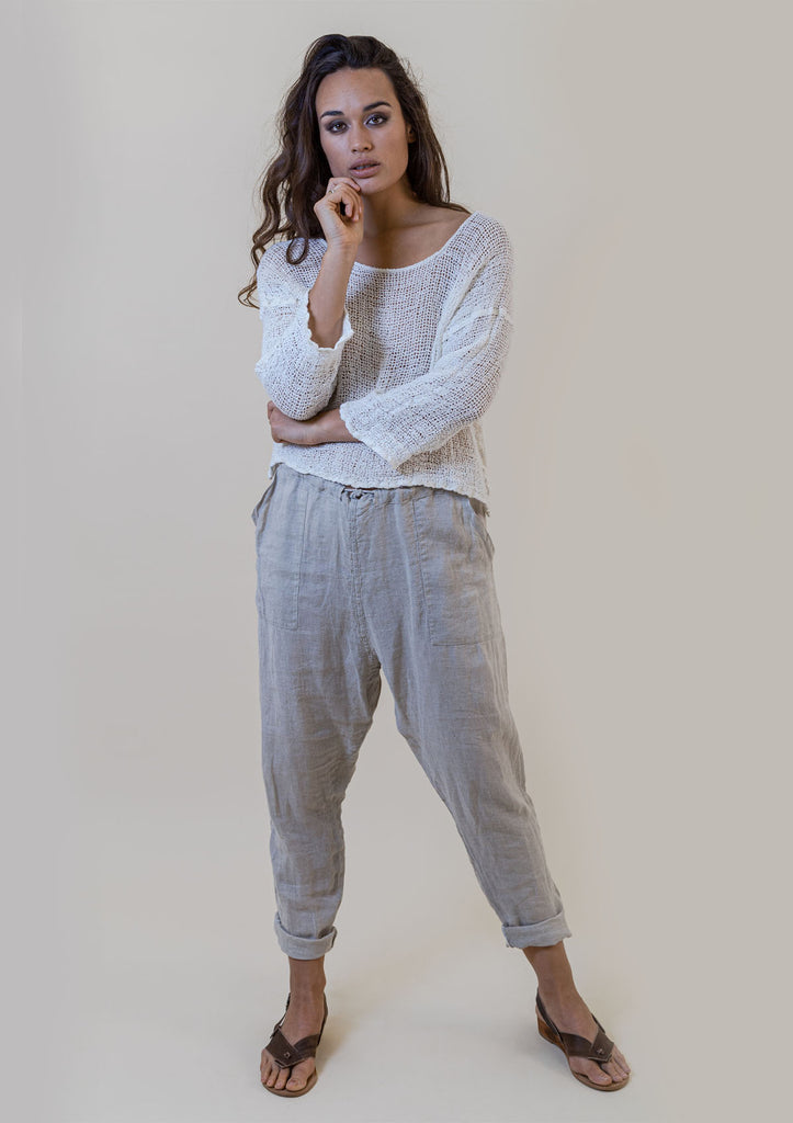 La Bottega di Brunella garments are entirely made in-house at their studio in Positano on the Amalfi Coast of Italy using the traditional artisanal methods of Italian manufacturing of flax. From the weaving of fibres into yarn, to the final product, this label honours the heritage of Italian linen manufacturing, making garments that can be worn for decades.