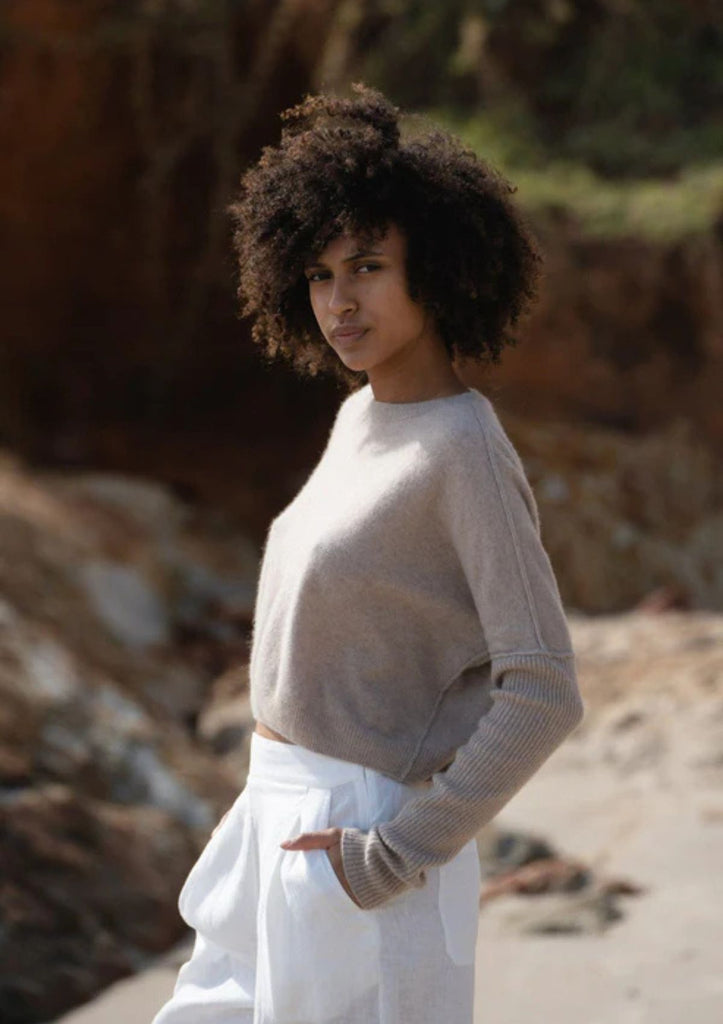 Cashmere is key in MIRI knit by LILLY PILLY. You'll feel the softness of 100% cashmere (60% recycled cashmere). Light on weight, heavy on warmth, this knit is perfect for layering with dresses, skirts, or even pants!