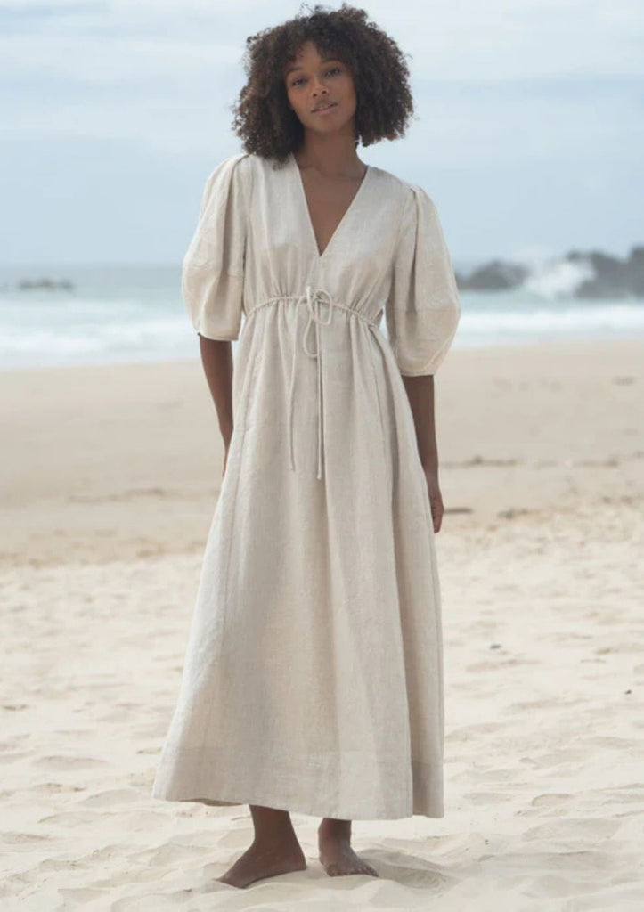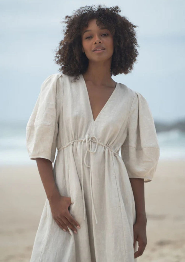 Lilly Pilly Vida Linen Dress - Oatmeal