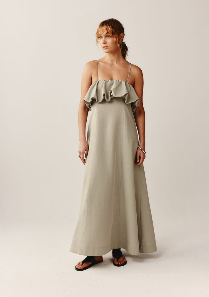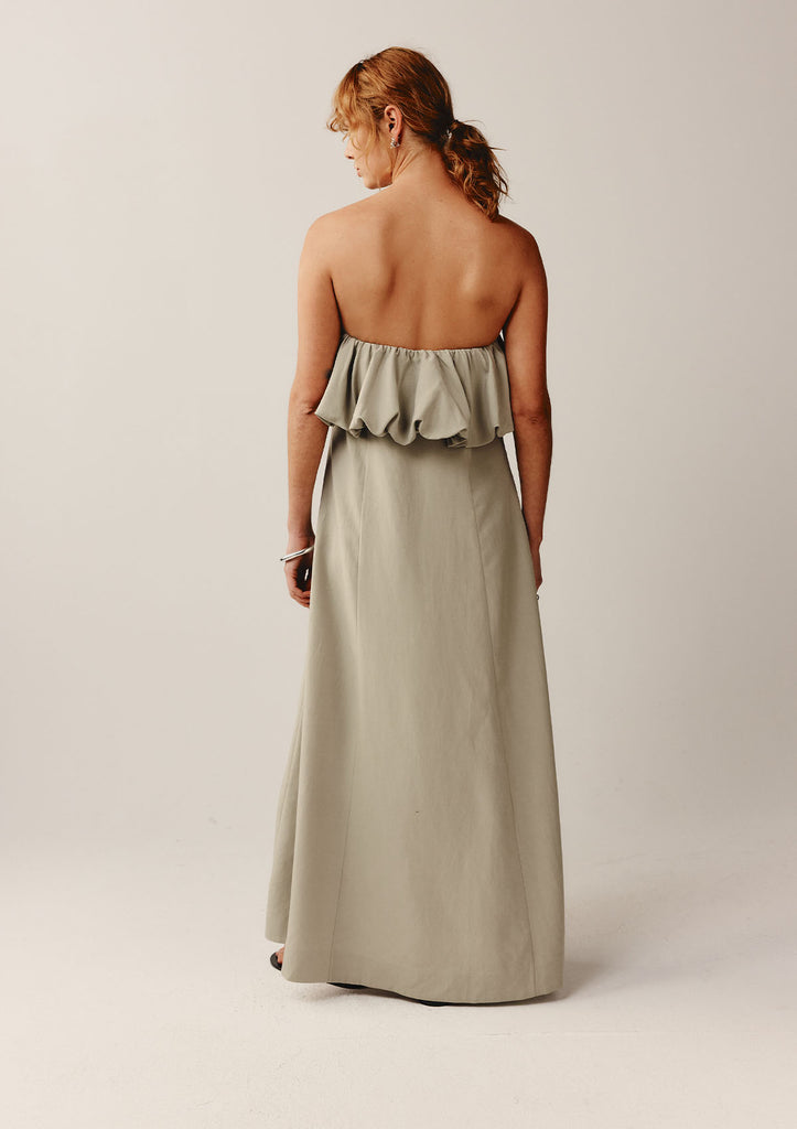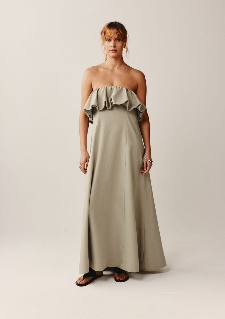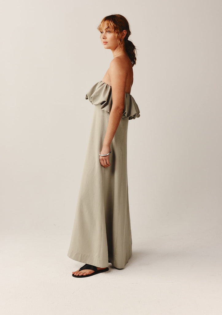 The Euri Dress from New Zealand designer, Marle features a strapless design with a softly ruffled bodice and a slim fit through the waist before falling into a subtle A-line silhouette. This dress is full-length and can be worn with or without the detachable straps. Crafted in a soft tencel and linen blend, lending a touch of elegance and sophistication.