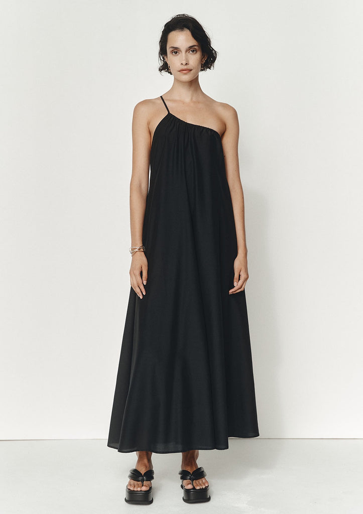 The Sage Dress from Marle features one shoulder styling and a relaxed A-line silhouette created by a subtle gather around the chest. The adjustable metal strap lets you customise the fit to your body. This full-length dress is crafted from a signature flax linen and expertly tailored to flatter with its longline silhouette, blending both fashion and comfort.