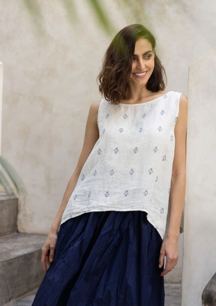 The Meg By Design Taji Top is made from a medium weight linen and features a round neckline and wide shoulder sleeves. The hemline is gently tapered on the sides to frame your shape beautifully. Designed to be worn solo or layered with many of their other pieces.