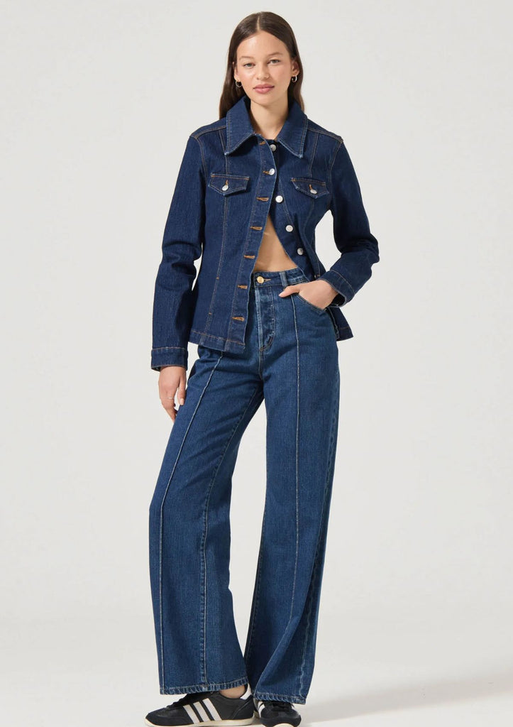 Model is 176cm tall, and wears a size 8/26 in denim and size S in apparel.