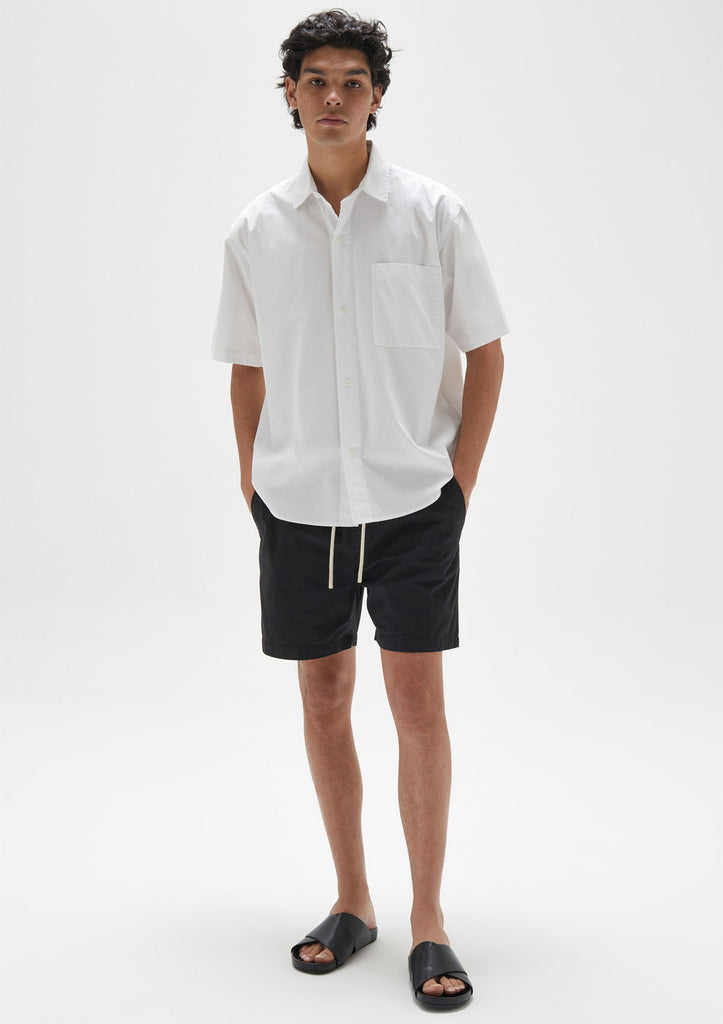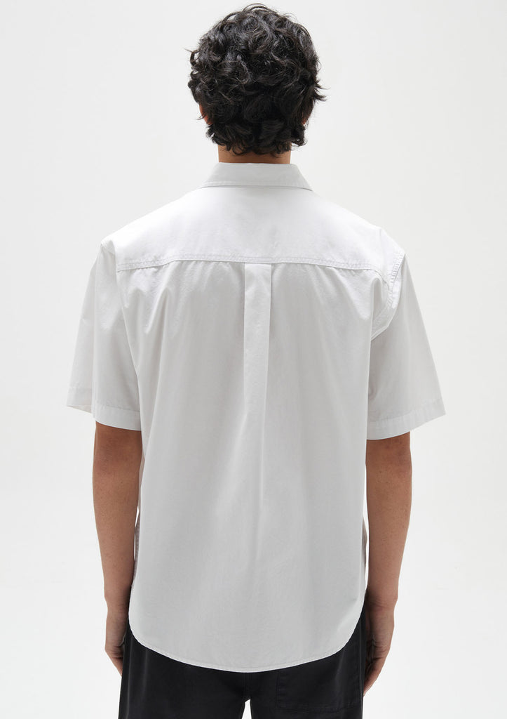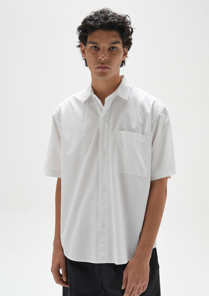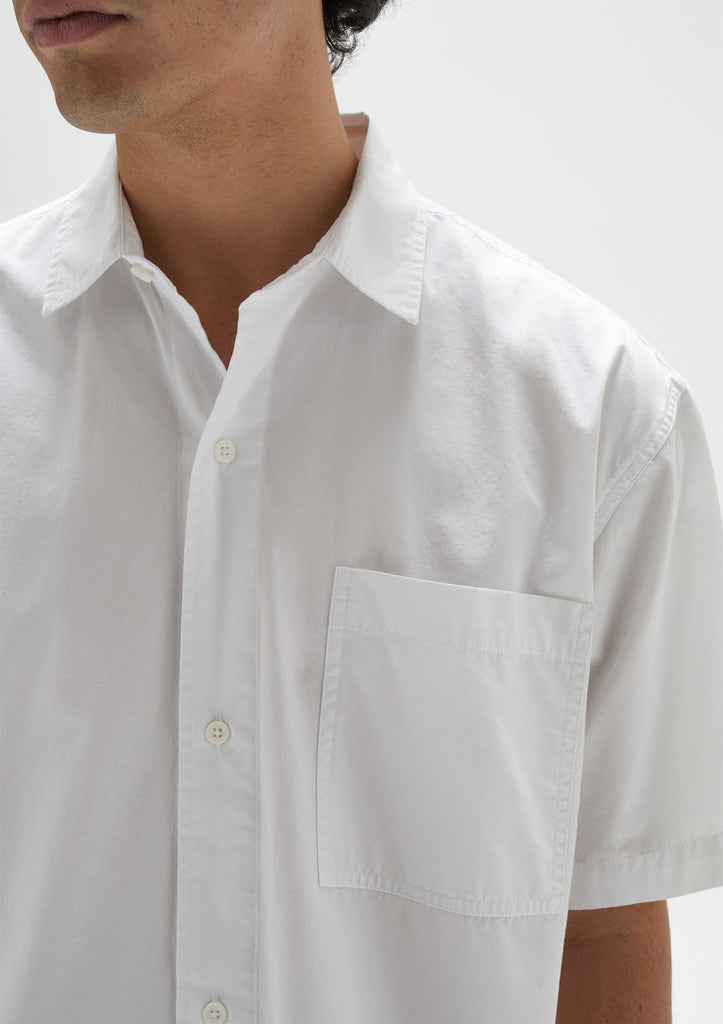 The Simon Poplin Short Sleeve Shirt is a wardrobe essential for warmer seasons. This button-up shirt is made from mid-weight cotton poplin and is designed for a modern boxy fit with a collar, box pleat and chest pocket.