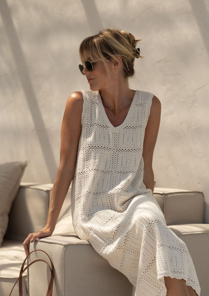 The Square Knit Midi Tank dress is crafted in 100% organic cotton, effortlessly delivering the perfect touch of nostalgia. This garment is unlined however the intricate square detailing creates a textured look that adds depth and dimension to your outfit whilst keeping you comfy all day long. Elevate with sandals and jewellery and you’re good to go.