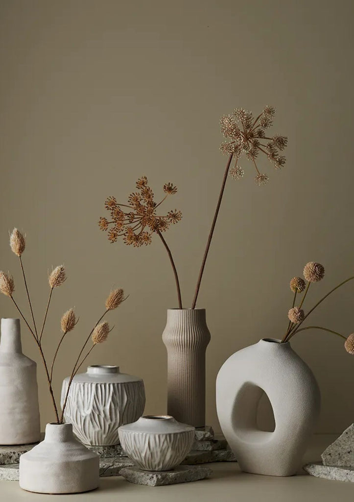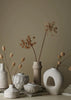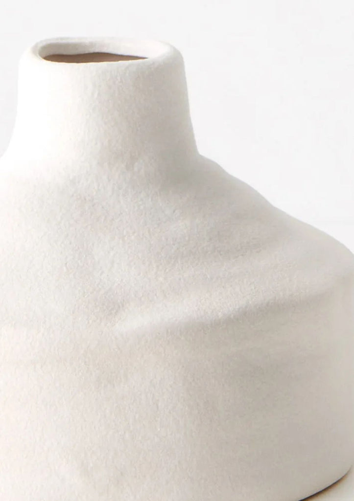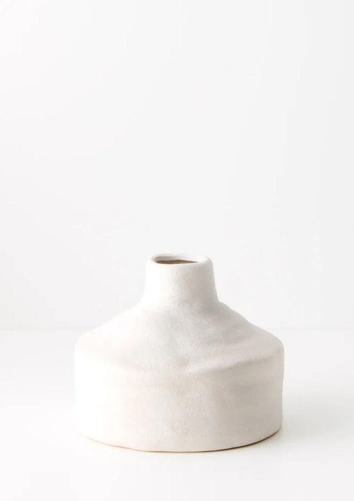The Ingrida vase, a charmingly imperfect handmade piece, boasts a matte finish that accentuates its artisanal charm. Ideal for small flowers, its unique character shines whether solo or adorned, adding a touch of organic elegance to any space.