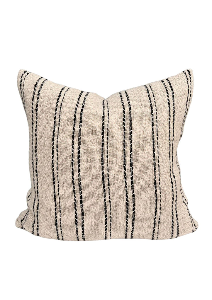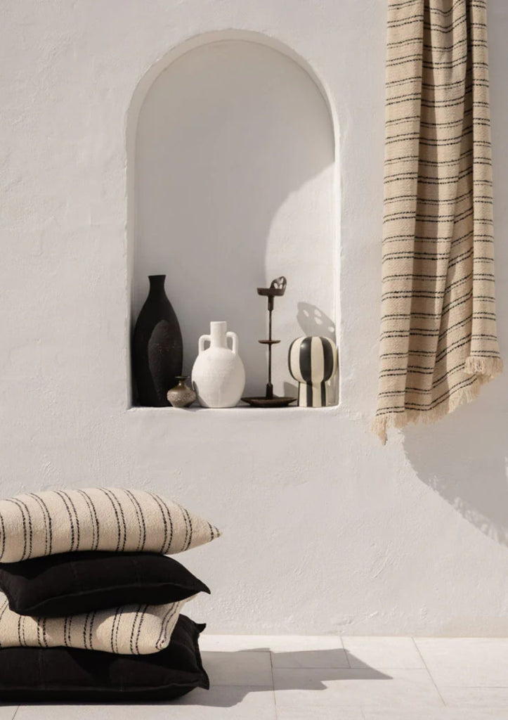 A refined essential for layered living. The Alba Cushion infuses Mediterranean style into your space with its neutral-toned base and woven black vertical stripes. A clean, linear look that complements both contemporary and relaxed interiors.