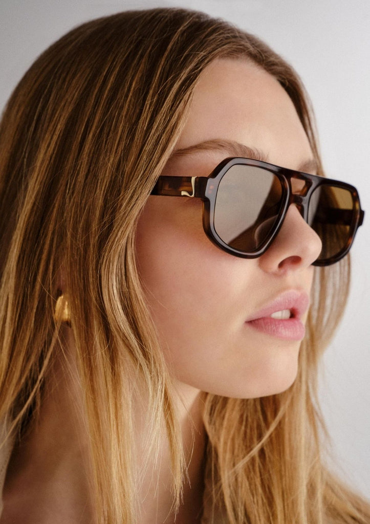 The Banks is an oversized aviator frame designed with thin temples to create a wearable classic silhouette. Featuring our organic L gold hardware on both temples to elevate this staple.