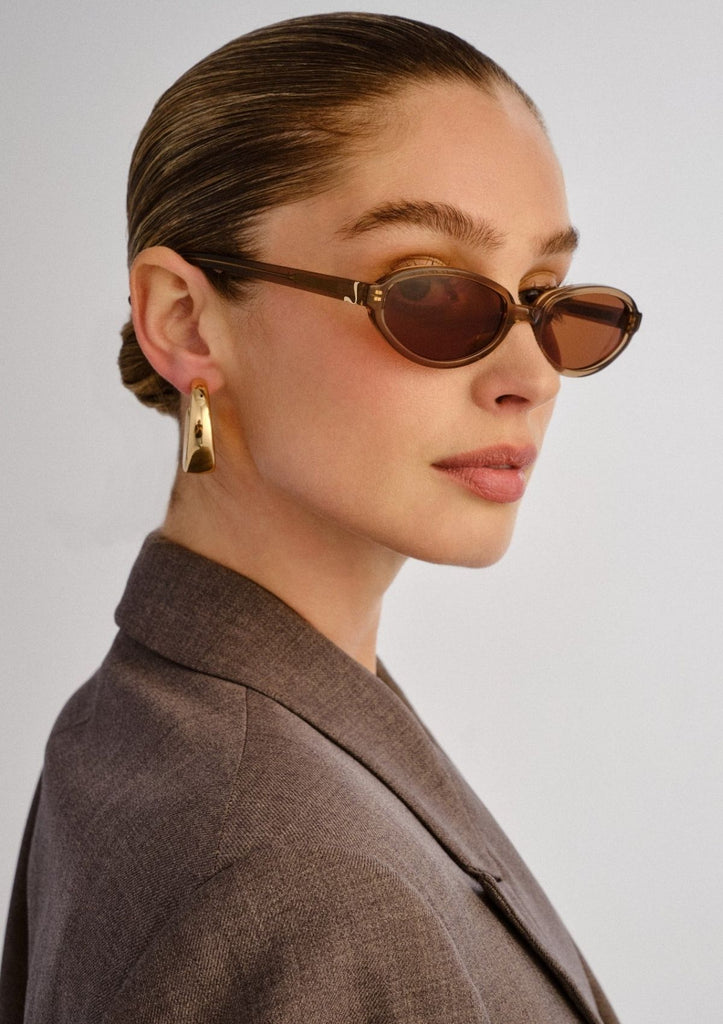 A perfect blend of vintage allure and modern luxury. The Olive features a small, round-oval frame with thin, delicately sculpted sides for an understated yet polished look. The organic L hardware on the temple adds a distinctive touch of sophistication, making this frame an exquisite statement of timeless refinement.