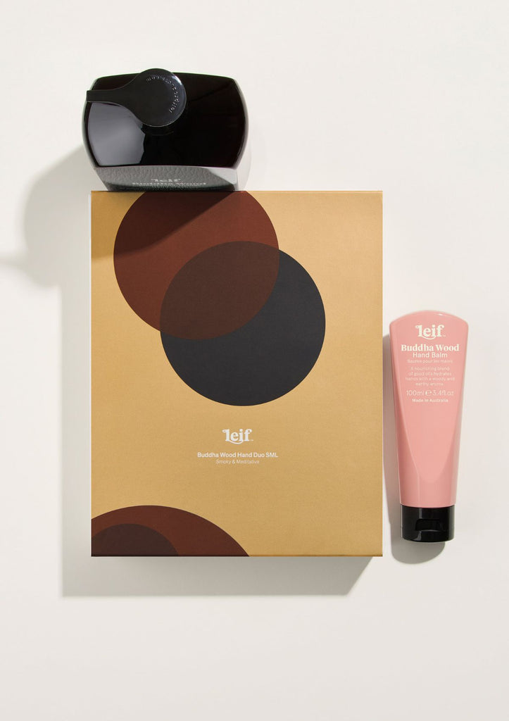 Deeply aromatic Buddha Wood Hand Wash & Balm 100mL is reimagined with the conceptual artwork of Sydney-based artist Mark Gowing.
