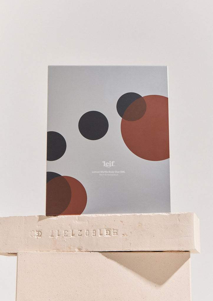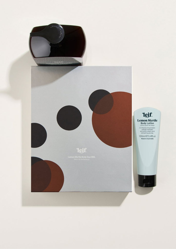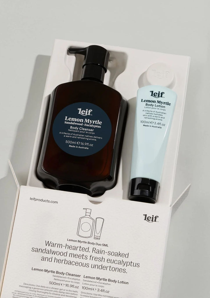 Warm-hearted Lemon Myrtle Body Cleanser 500mL & Lotion 100mL is reimagined with the conceptual artwork of Sydney-based artist Mark Gowing.