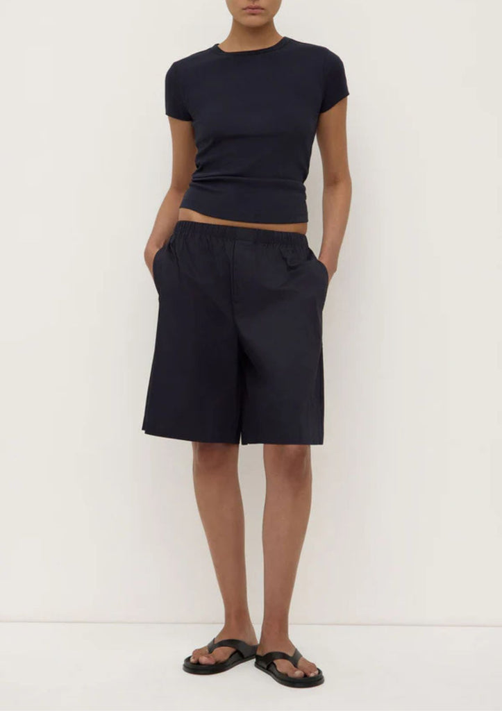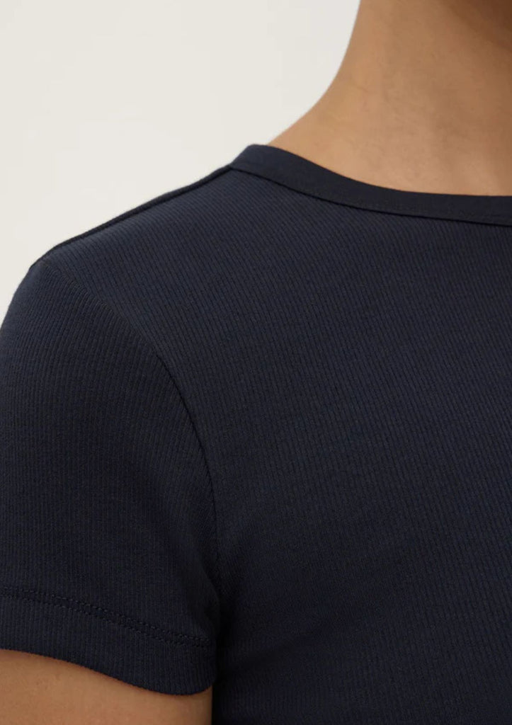 Designed for a slim fit, this tee is crafted from a stretchy cotton fabrication and features a ribbed design with cap sleeves and a centre-back seam detail.